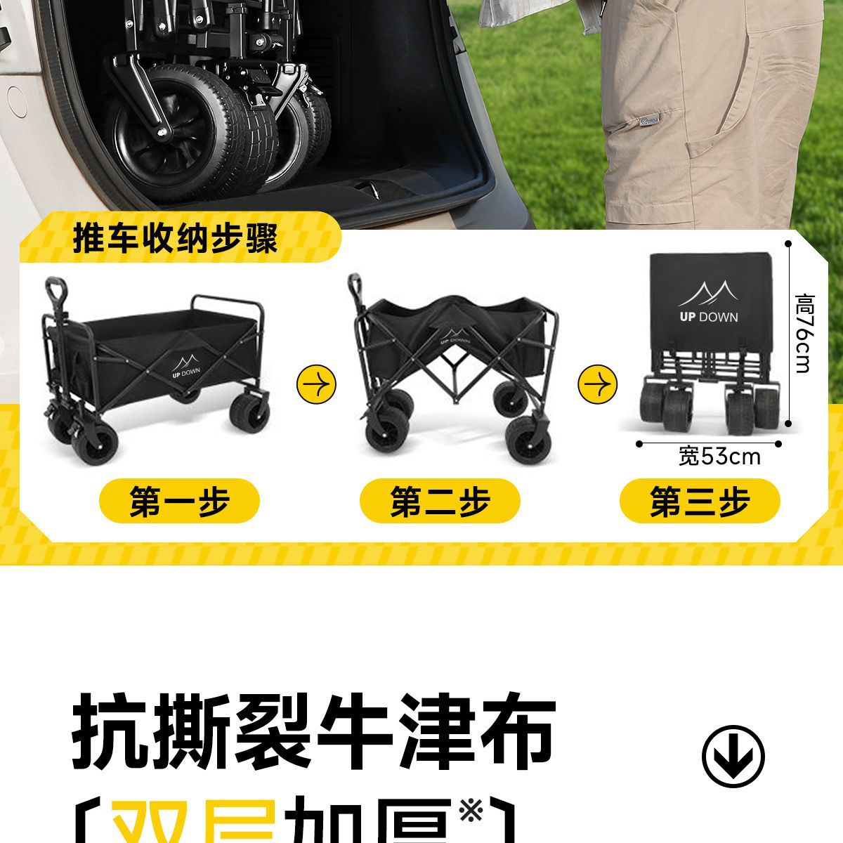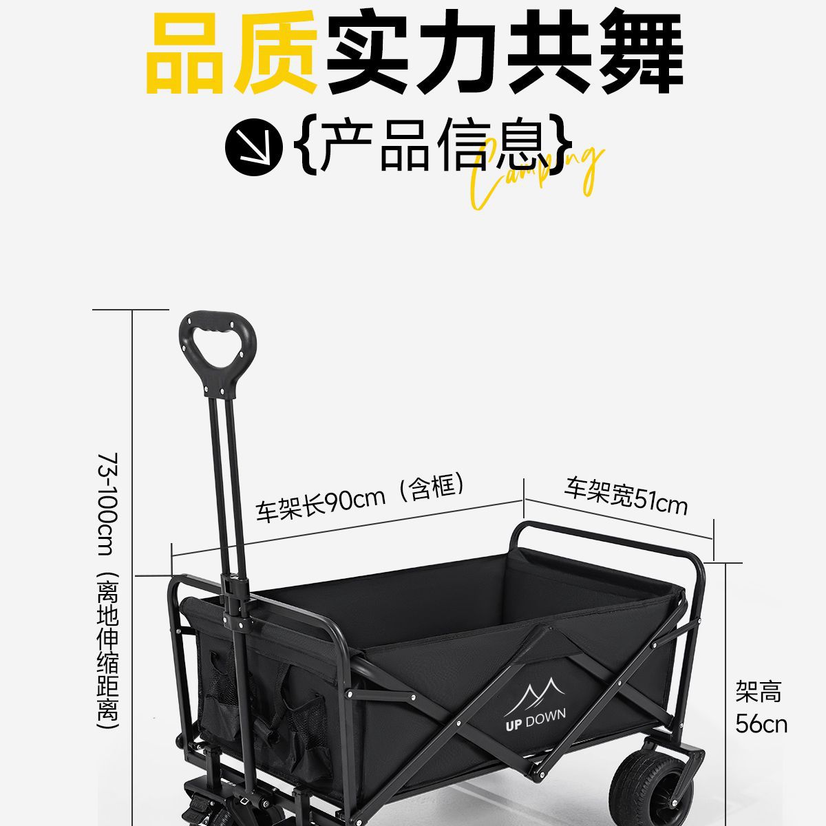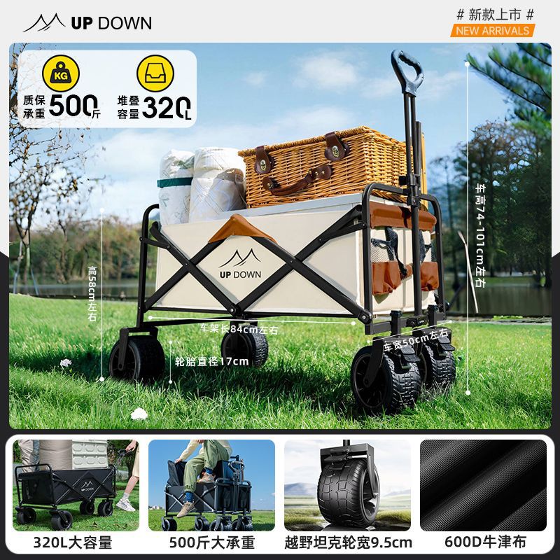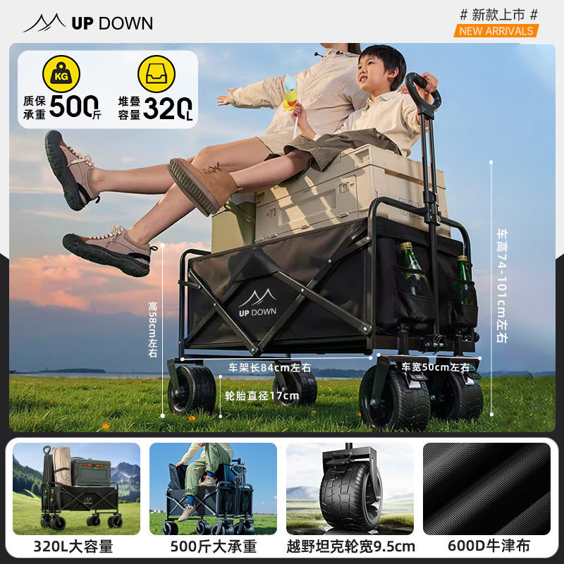 Updown 캠핑카 대형 야외 접이식 캠핑카 어린이용 리클라이닝 스톨 캠핑 트레일러 카트스토어 가기
