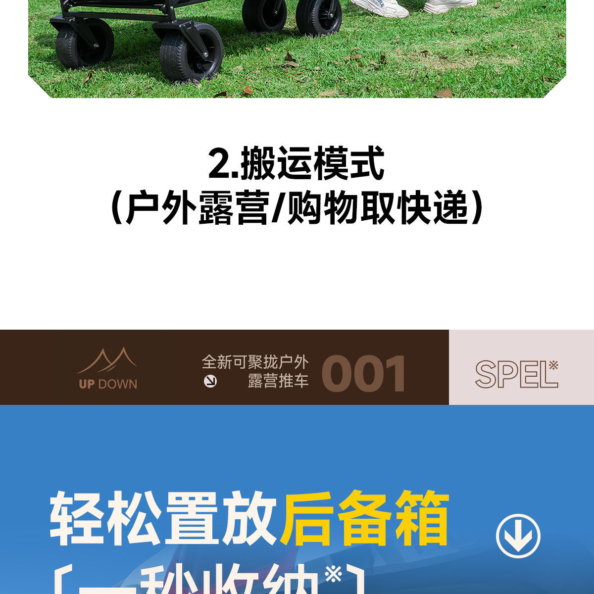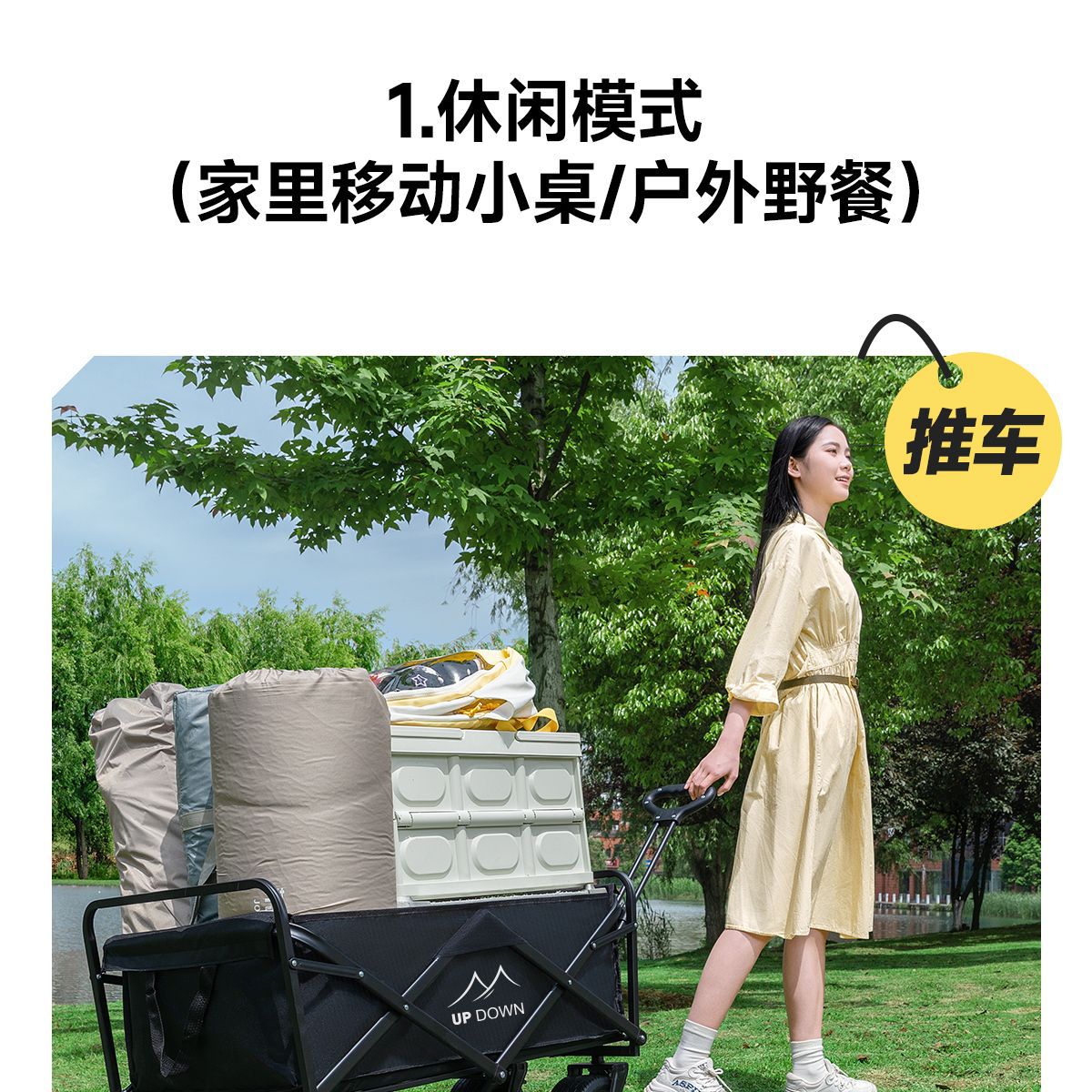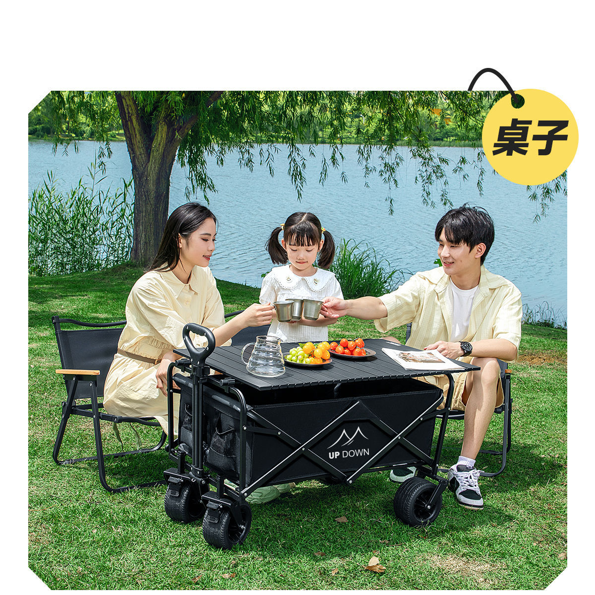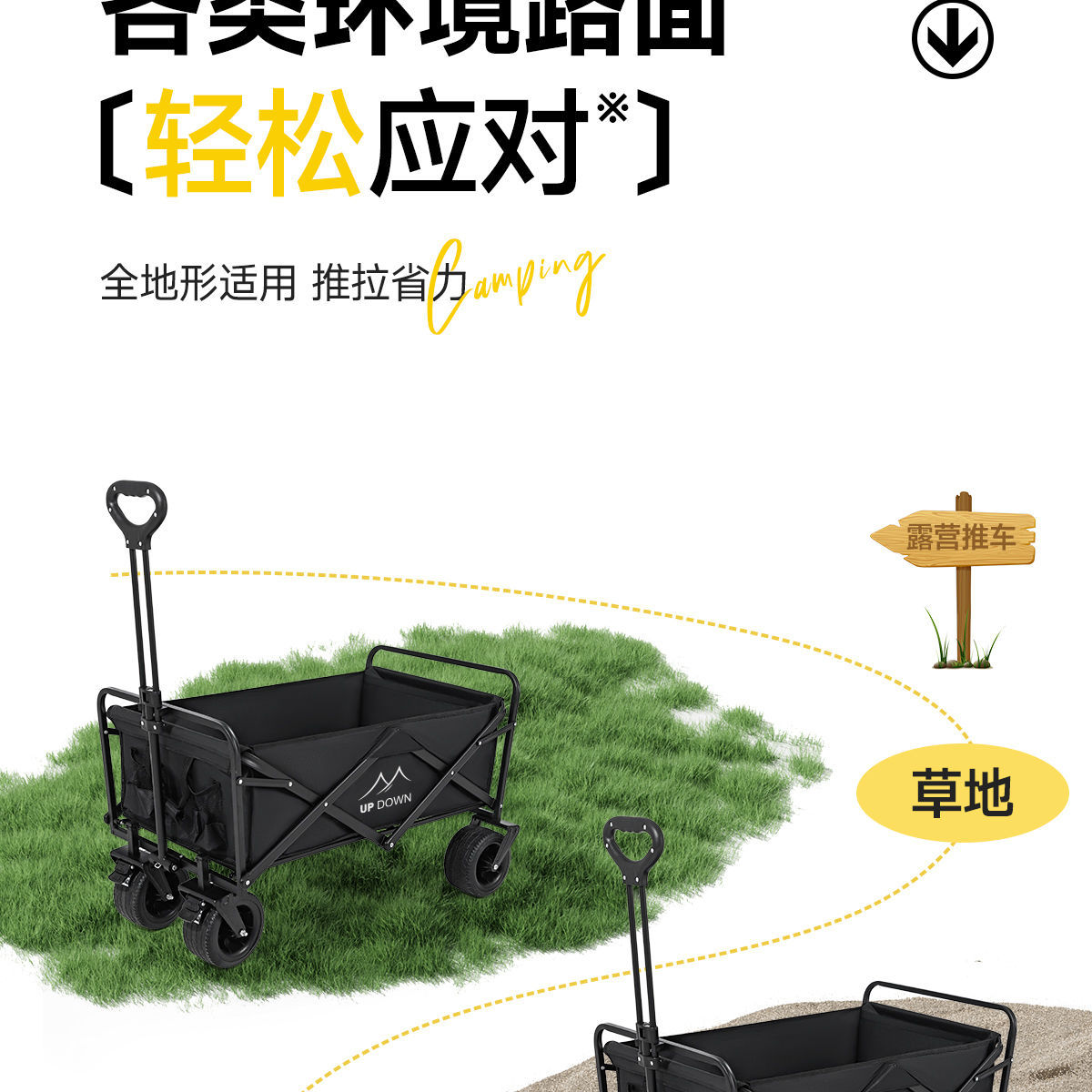 Updown 캠핑카 대형 야외 접이식 캠핑카 어린이용 리클라이닝 스톨 캠핑 트레일러 카트스토어 가기