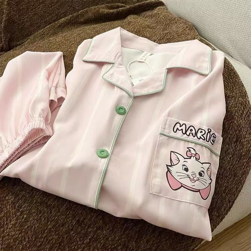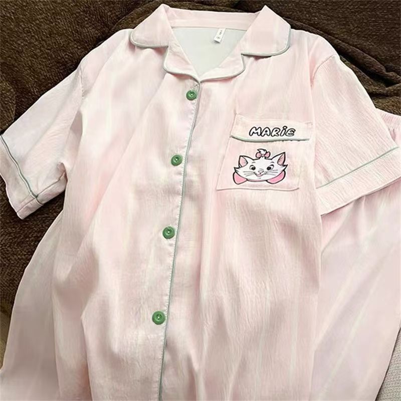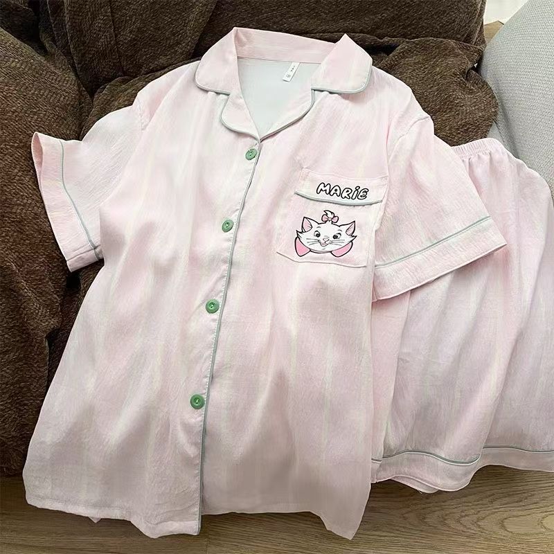 2025 달콤한 패션 선택 귀여운 줄무늬 큰 얼굴 고양이 잠옷 여성 여름 반팔 반바지 홈웨어 세트