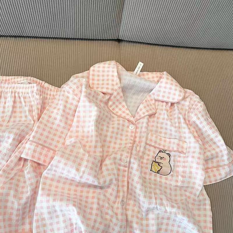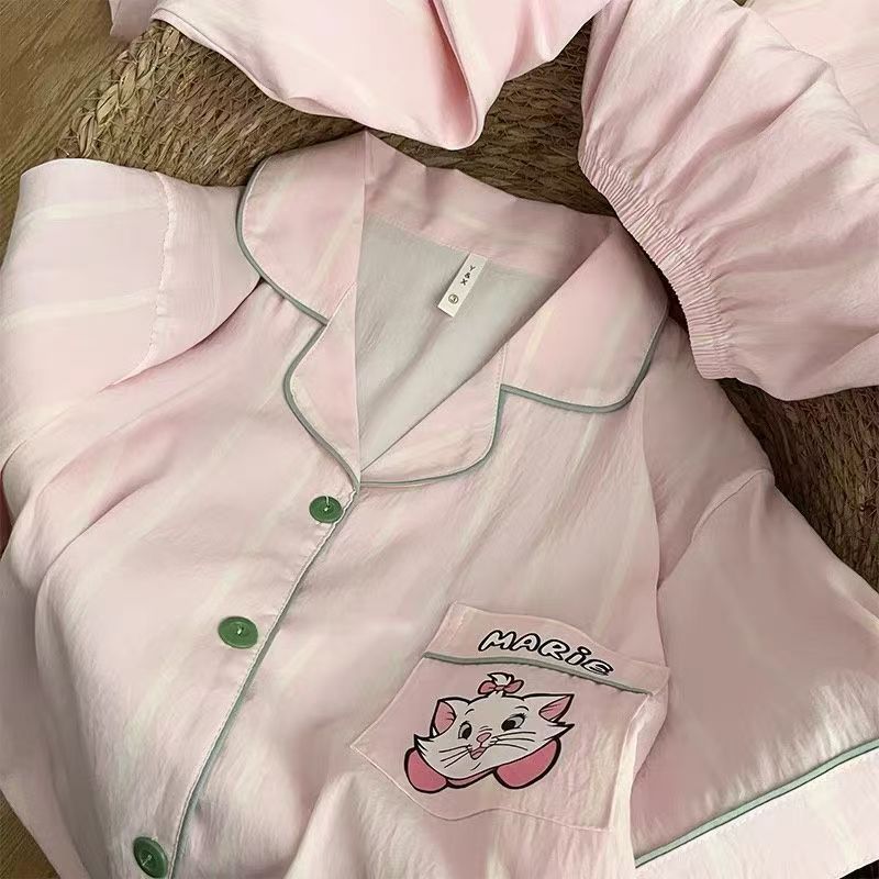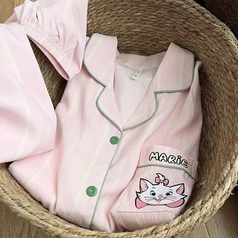 2025 달콤한 패션 선택 귀여운 줄무늬 큰 얼굴 고양이 잠옷 여성 여름 반팔 반바지 홈웨어 세트스토어 가기