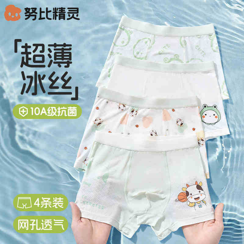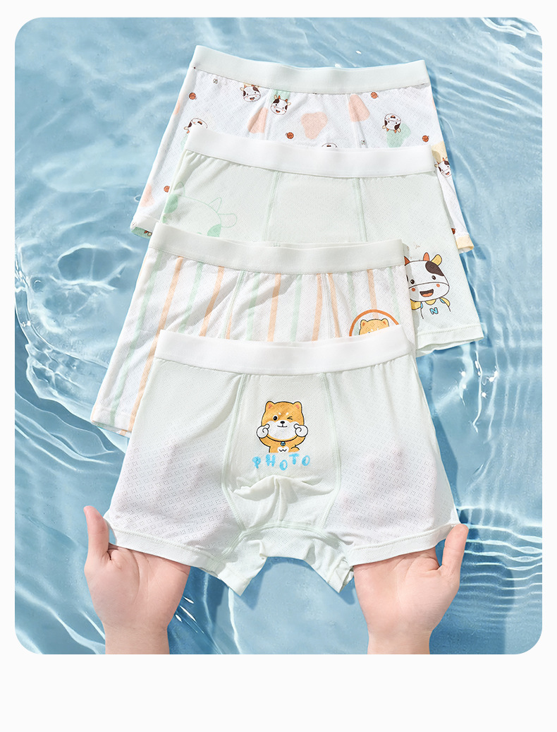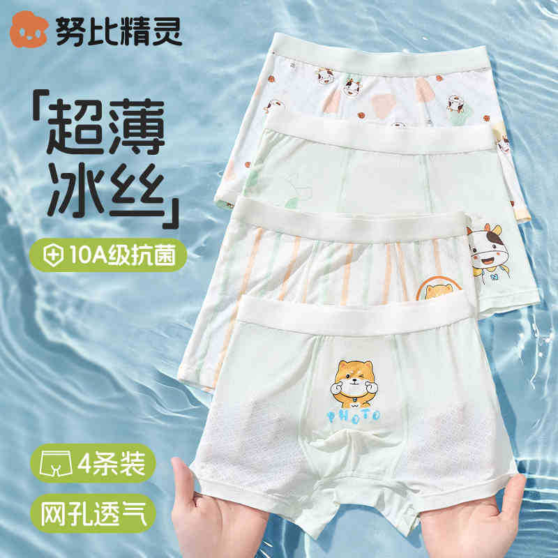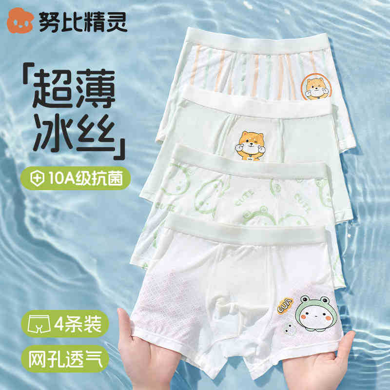 아동 속옷, 남아용 아이스 실크 통기성 메쉬 여름 얇은 복서 스타일, 중대형 아동용 클립 프리 PP 남아용 복서 반바지스토어 가기