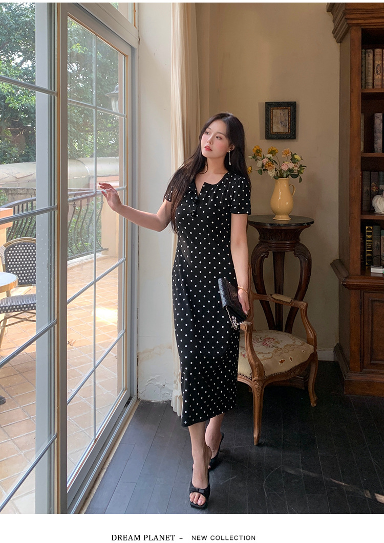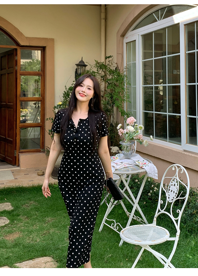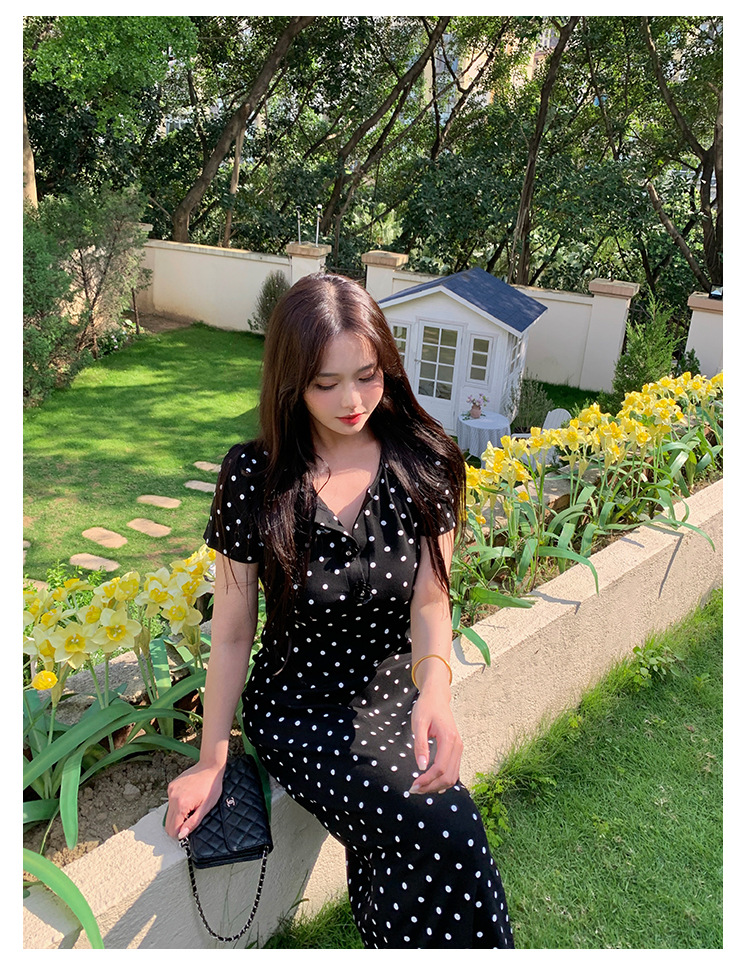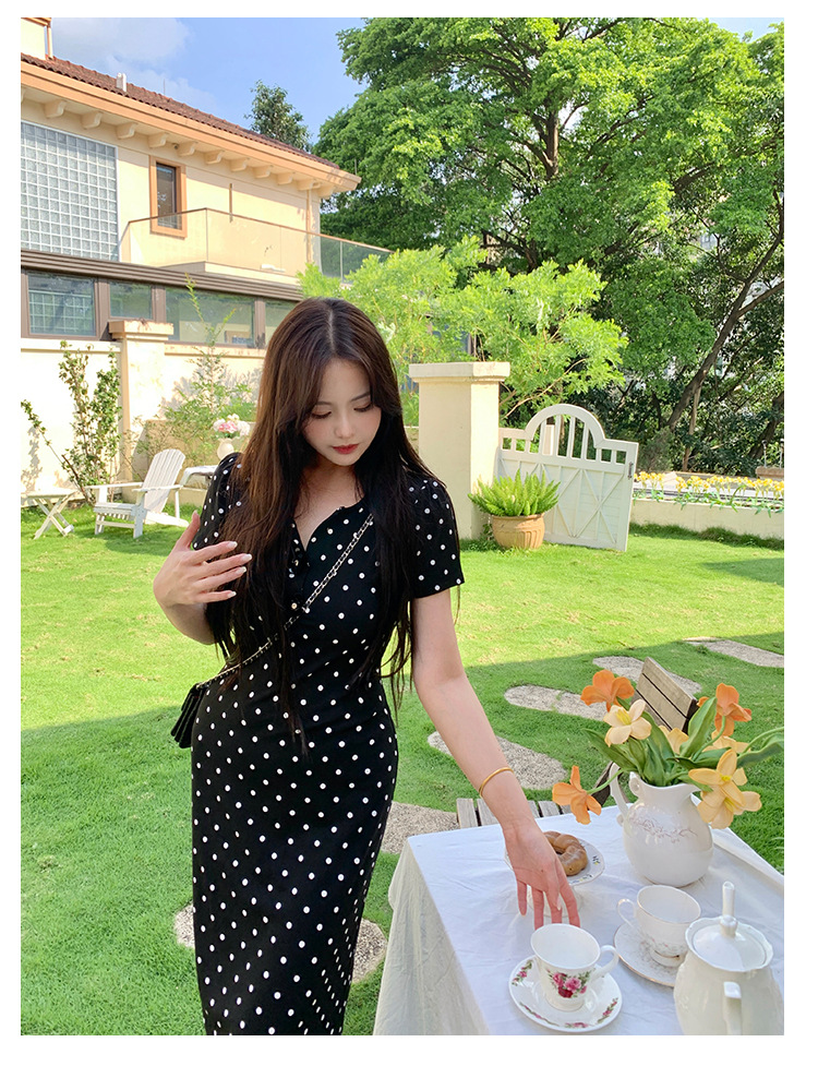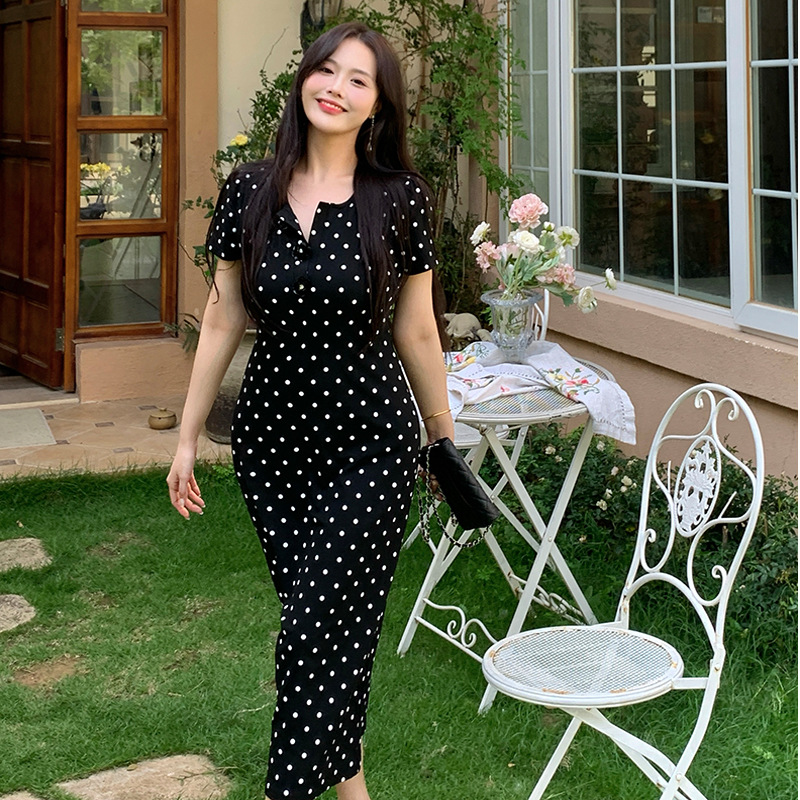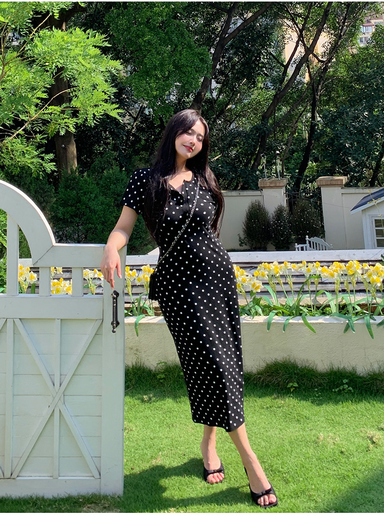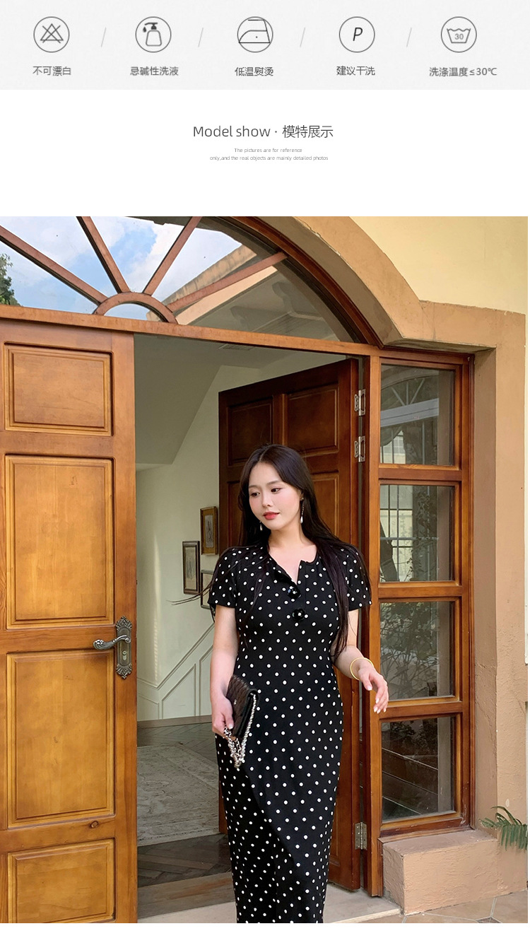 플러스 사이즈 여성 하이 엔드 프랑스 패션 섹시한 웨이브 포인트 엉덩이 원피스 통통녀 스퀘어 넥 슬림 핏 롱 2089스토어 가기