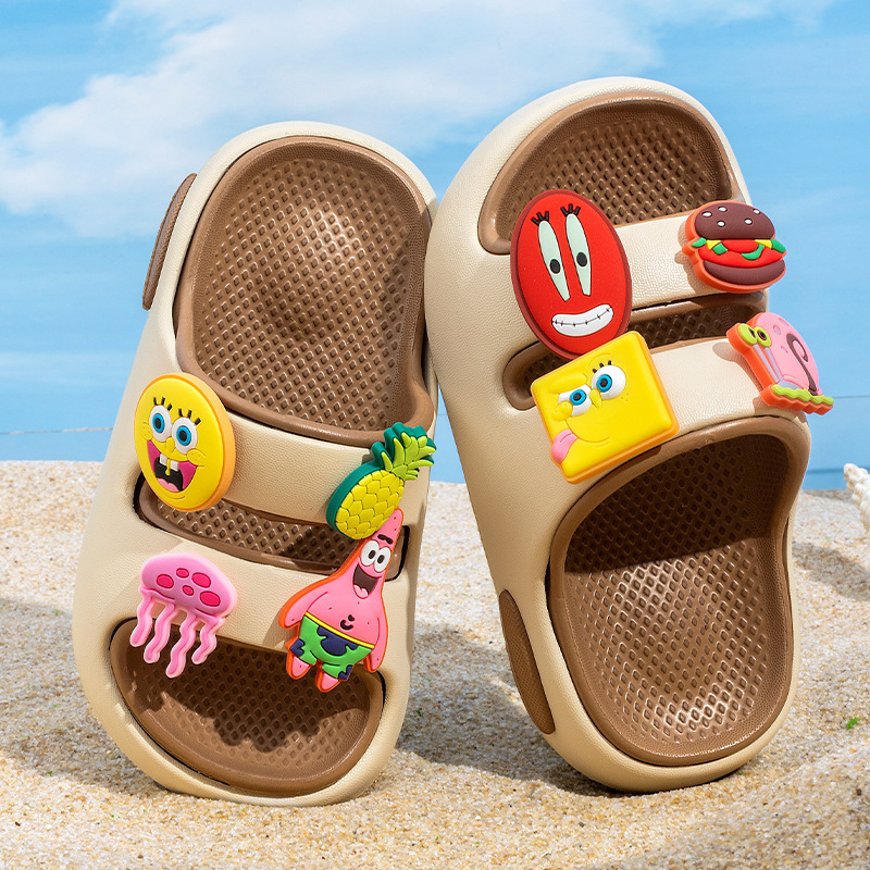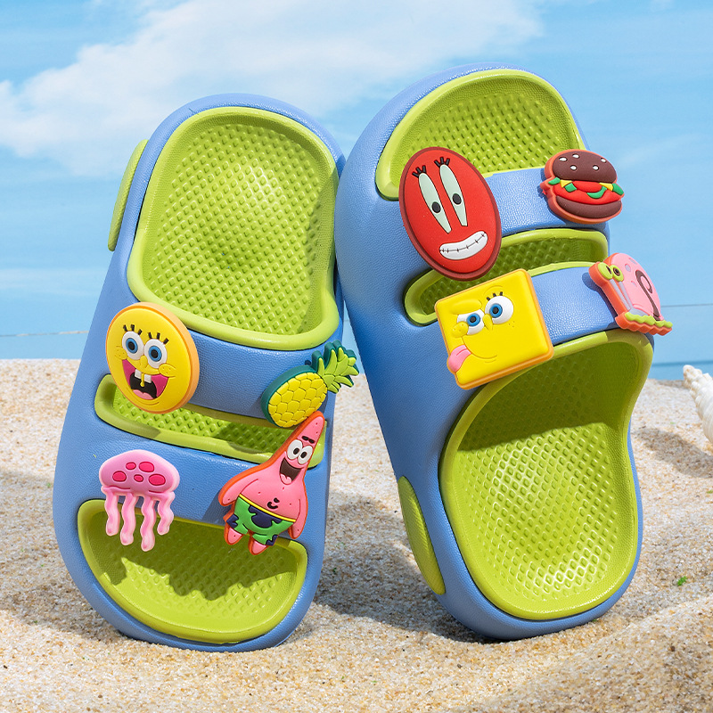 스폰지 밥 어린이 슬리퍼 소년 여름 야외 착용 미끄럼 방지 홈 실내 중대형 어린이 소녀 슬리퍼