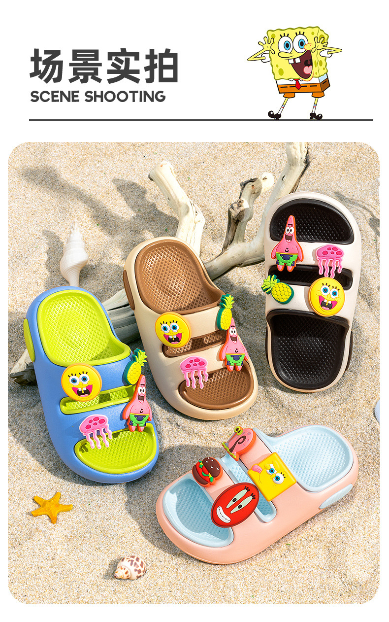 스폰지 밥 어린이 슬리퍼 소년 여름 야외 착용 미끄럼 방지 홈 실내 중대형 어린이 소녀 슬리퍼스토어 가기