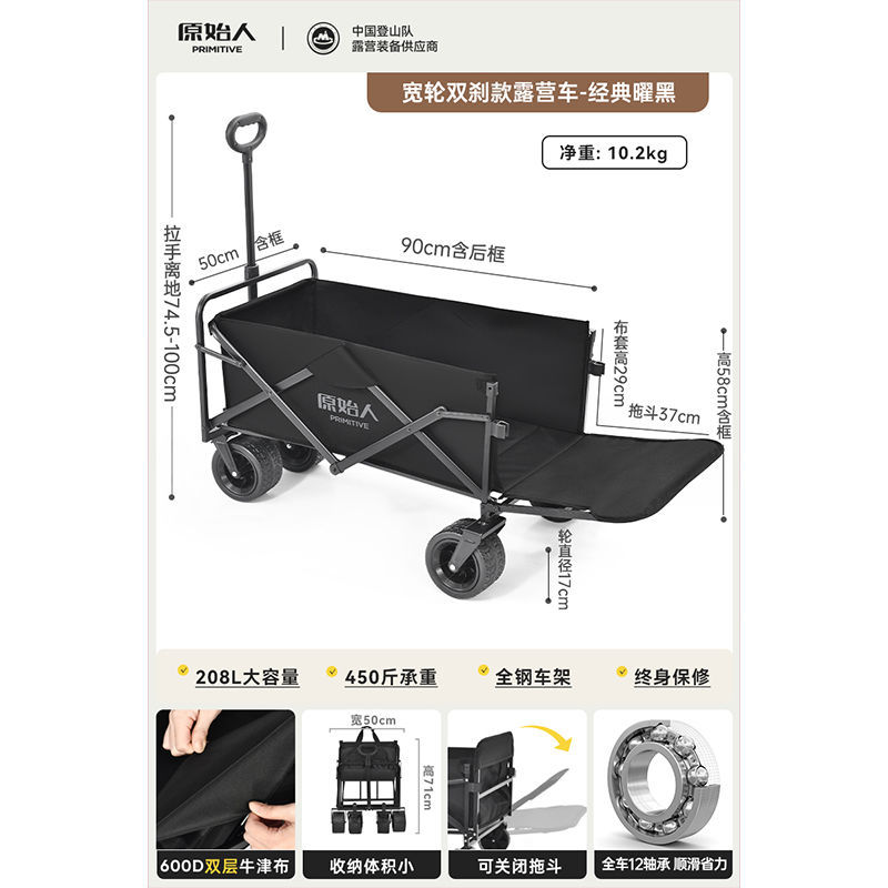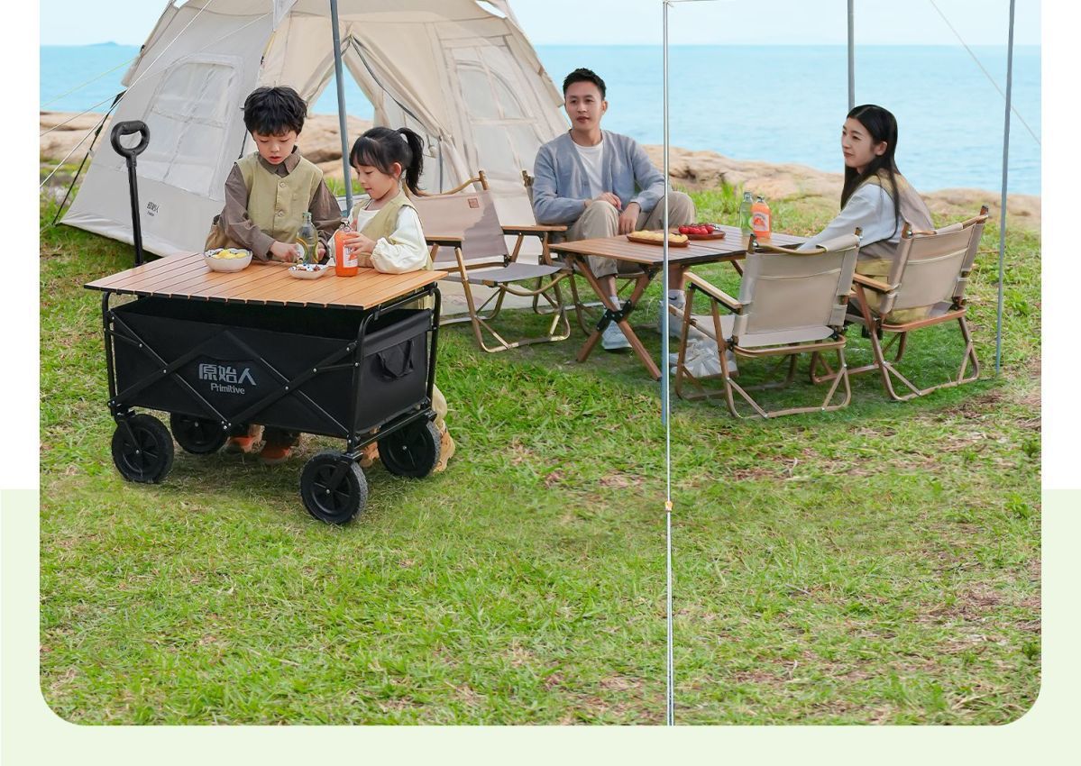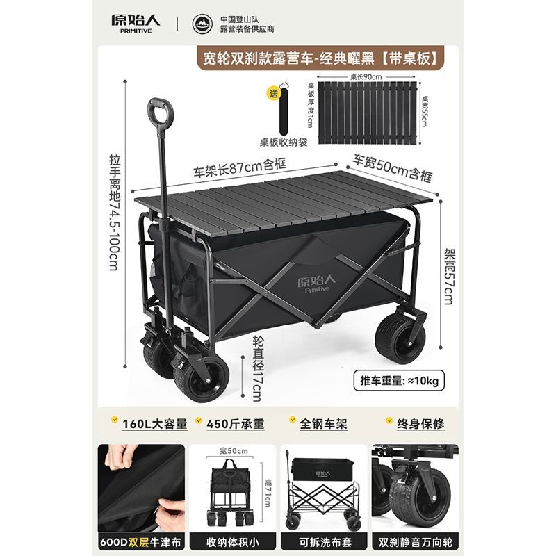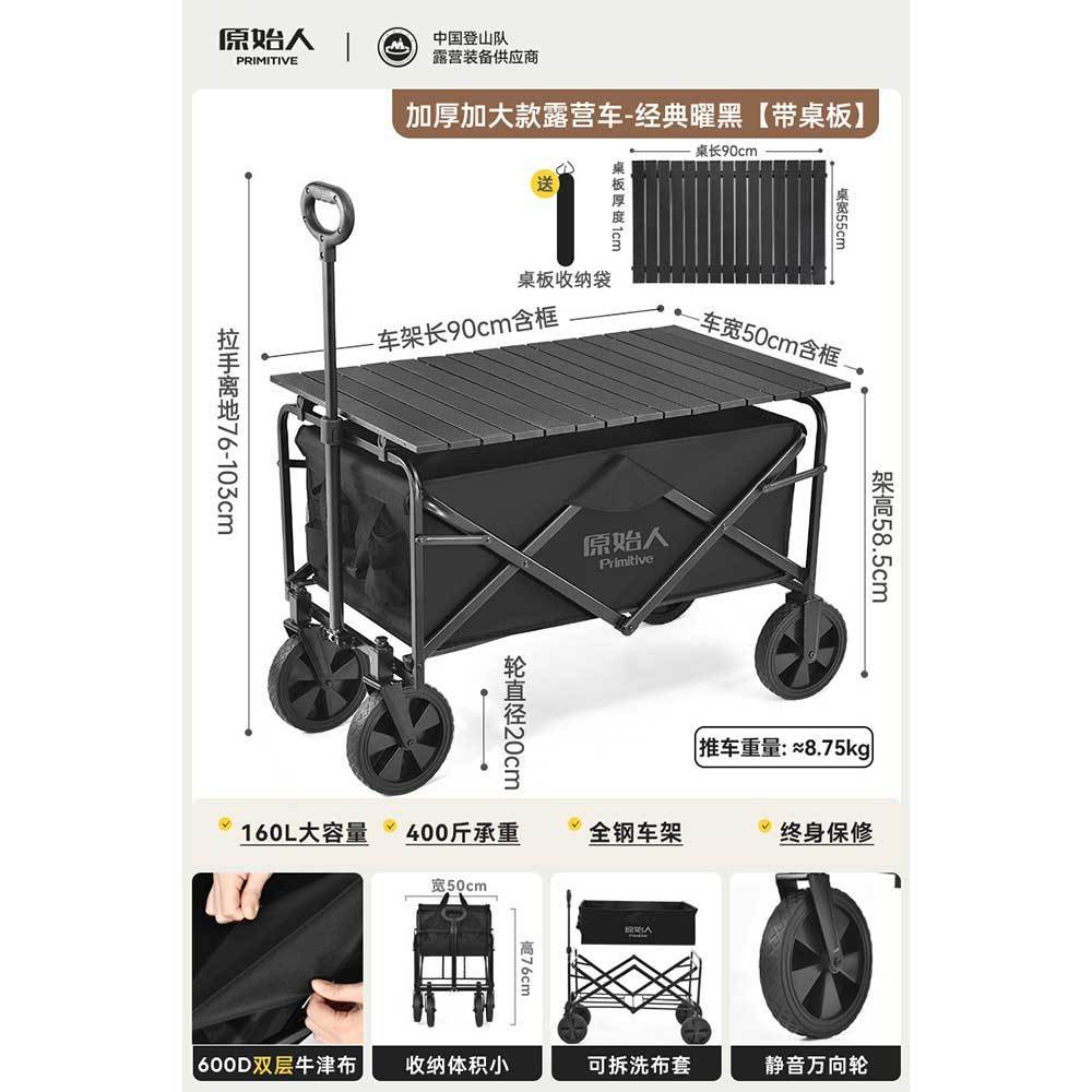 원시 캠핑 트롤리 캠프 트레일러 야외 접이식 캠핑 오프로드 트롤리 핸드 트롤리 피크닉 카트 테이블