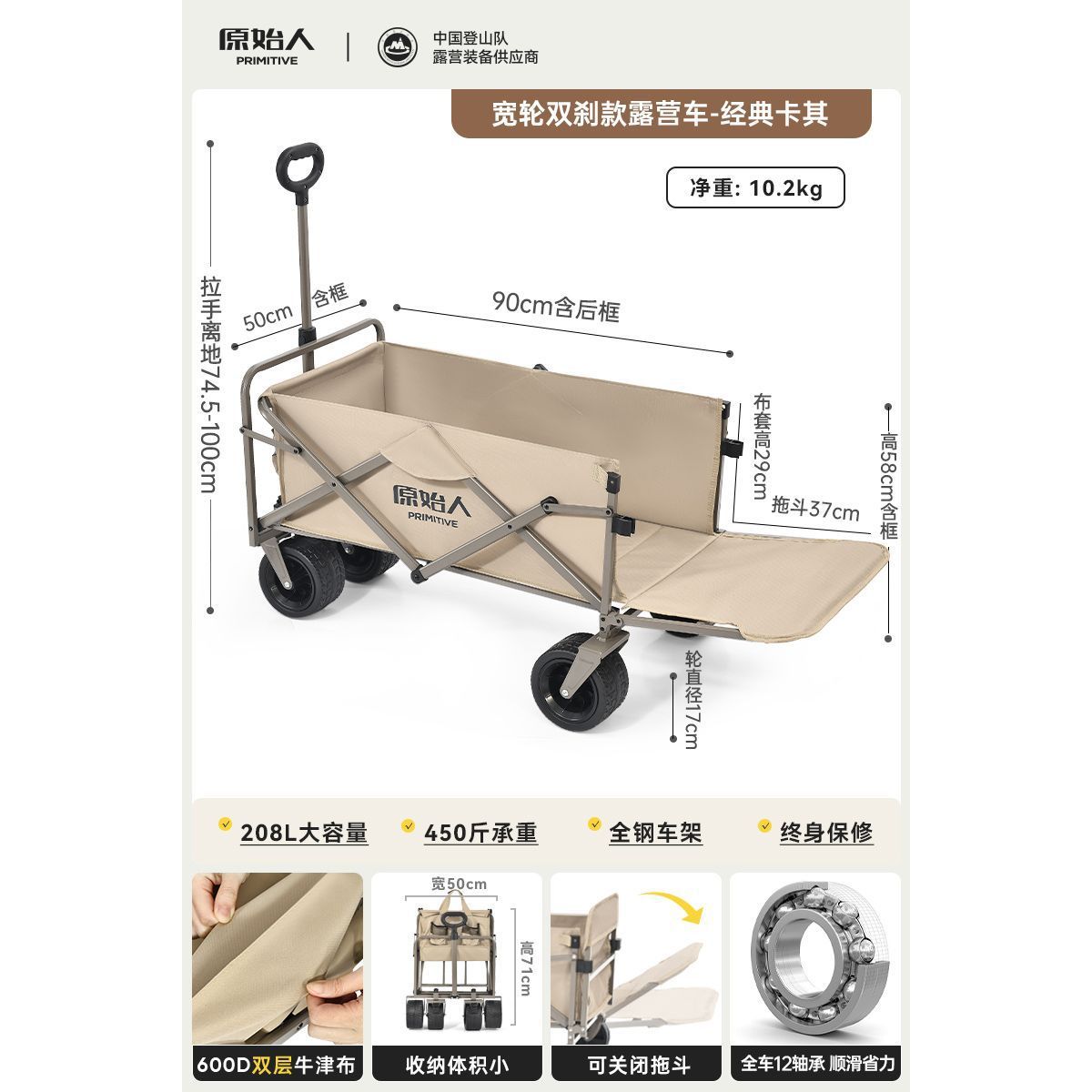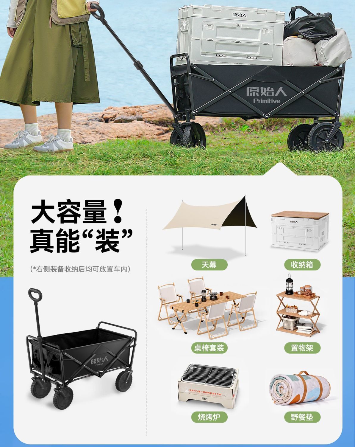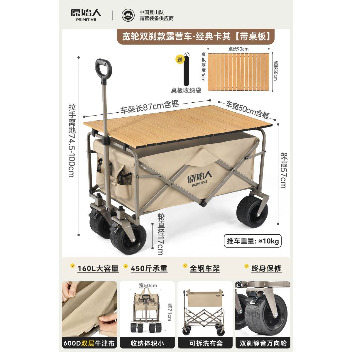 원시 캠핑 트롤리 캠프 트레일러 야외 접이식 캠핑 오프로드 트롤리 핸드 트롤리 피크닉 카트 테이블