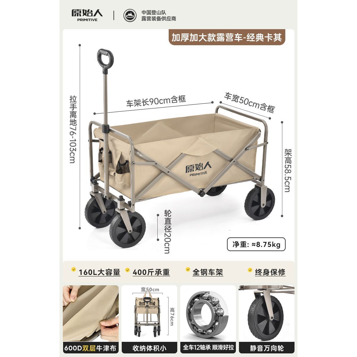 • [카키] 휴대용 모델 [볼드 올스틸 프레임/회전바퀴] - 프리미티브 아웃도어 캠프카