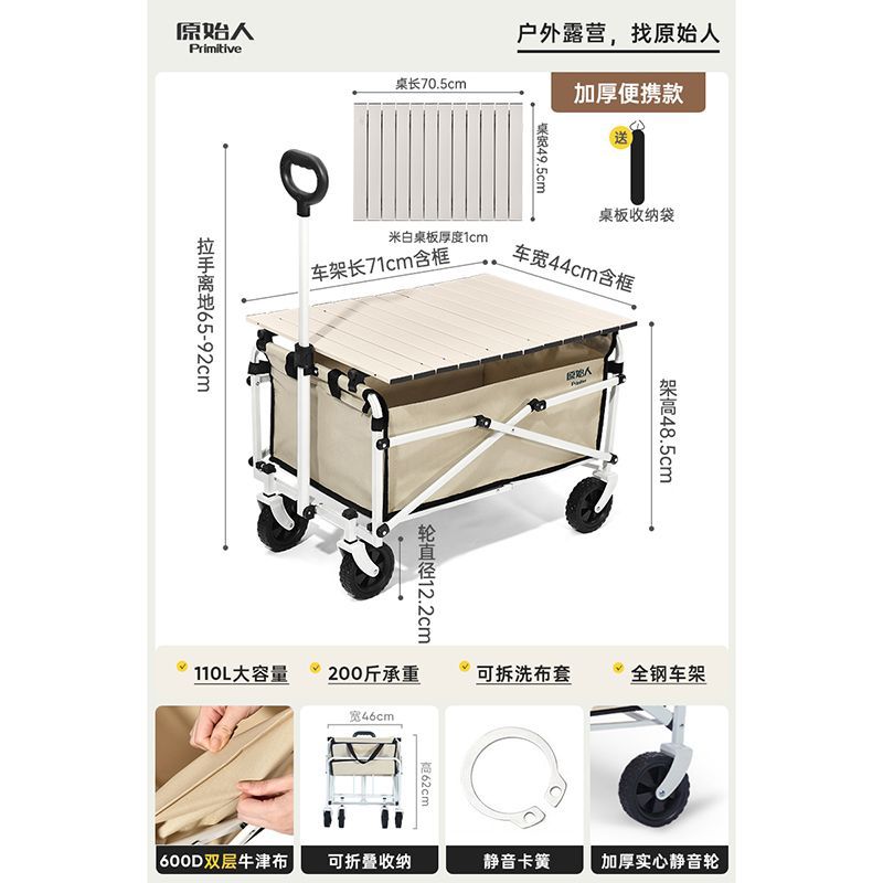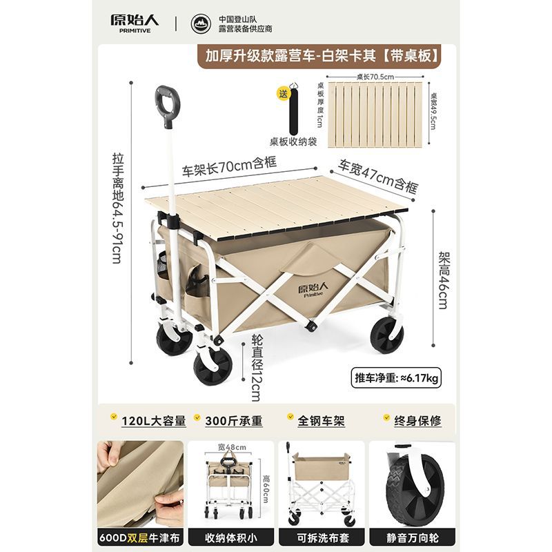 원시 캠핑 트롤리 캠프 트레일러 야외 접이식 캠핑 오프로드 트롤리 핸드 트롤리 피크닉 카트 테이블스토어 가기