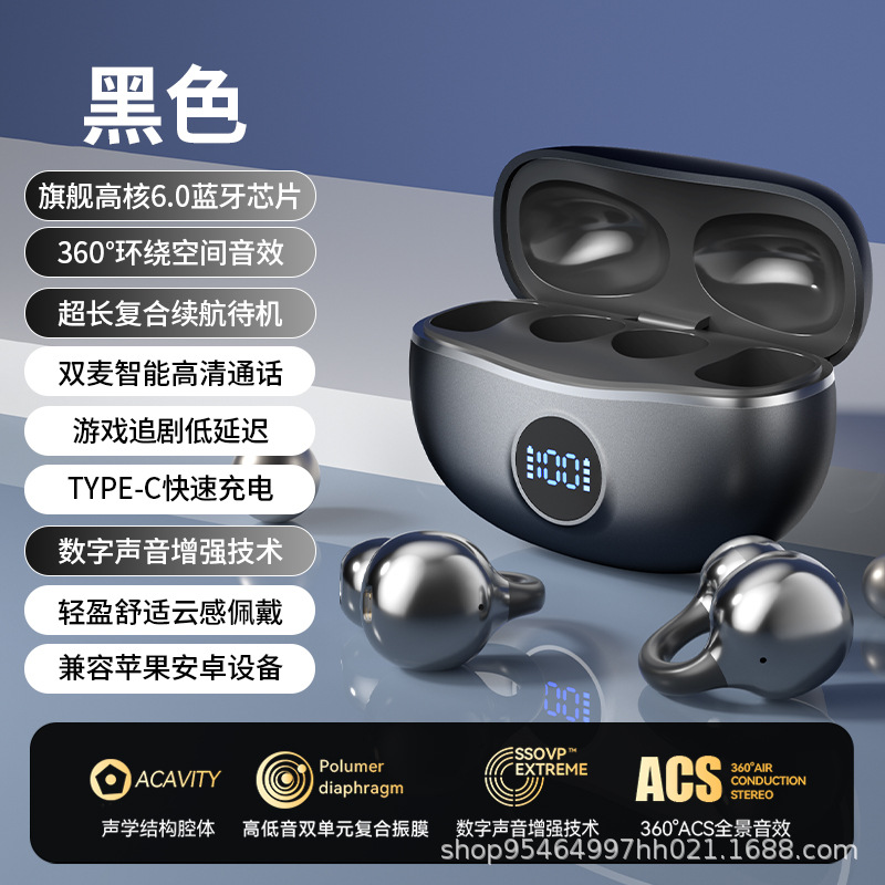 새로운 S88 디지털 디스플레이 무선 블루투스 헤드셋 이어 클립 유형 슈퍼 긴 배터리 수명 무감각 착용 수면 사용 가능