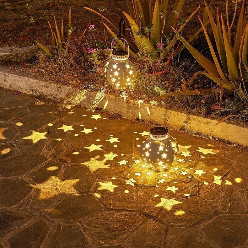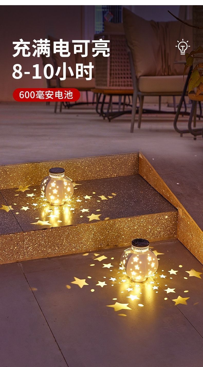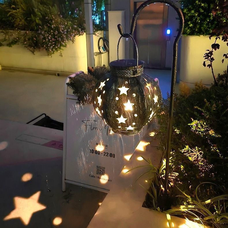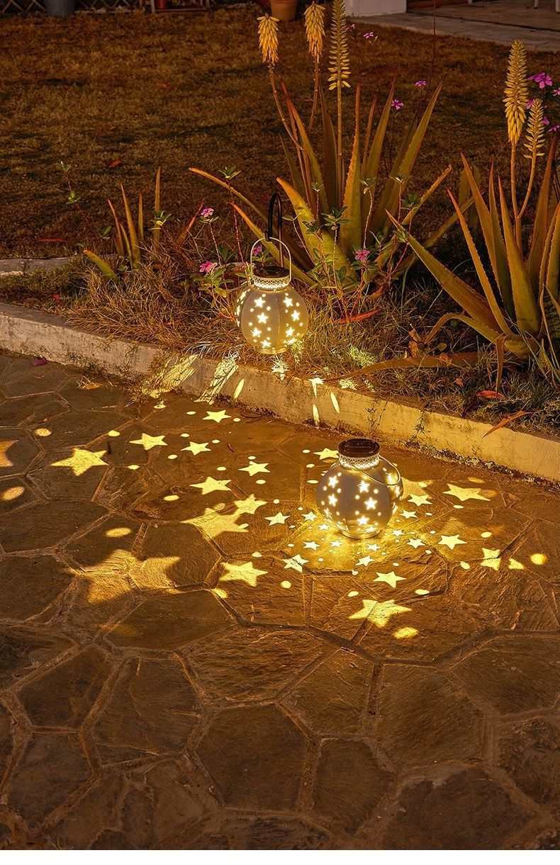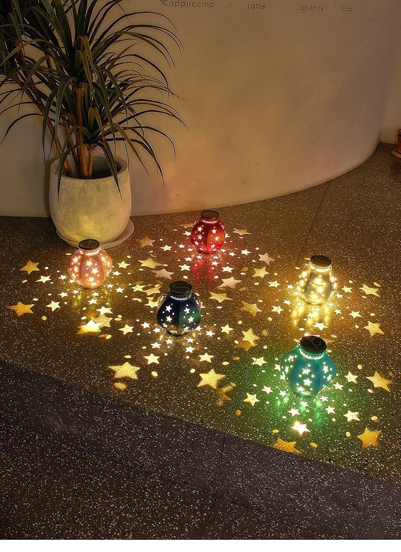 태양 스타 램프 안뜰 정원 발코니 분위기 램프 LED 방수 오각형 호박 램프 태양 꽃 램프스토어 가기
