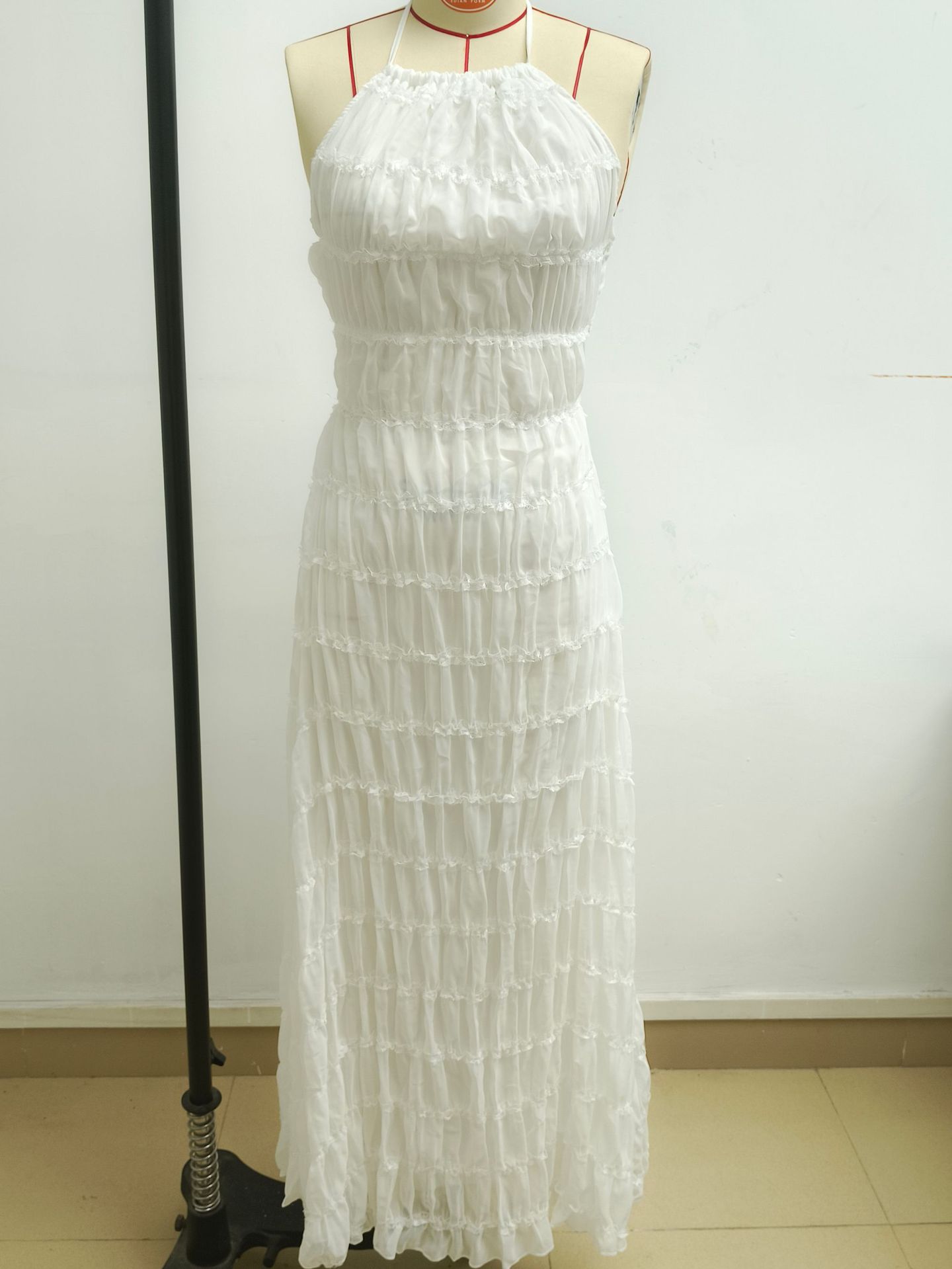 유럽과 미국의 대외 무역 여성의 등이없는 주름 직물 독특한 원피스 새로운 통기성 레이스 업 연꽃 잎 원피스