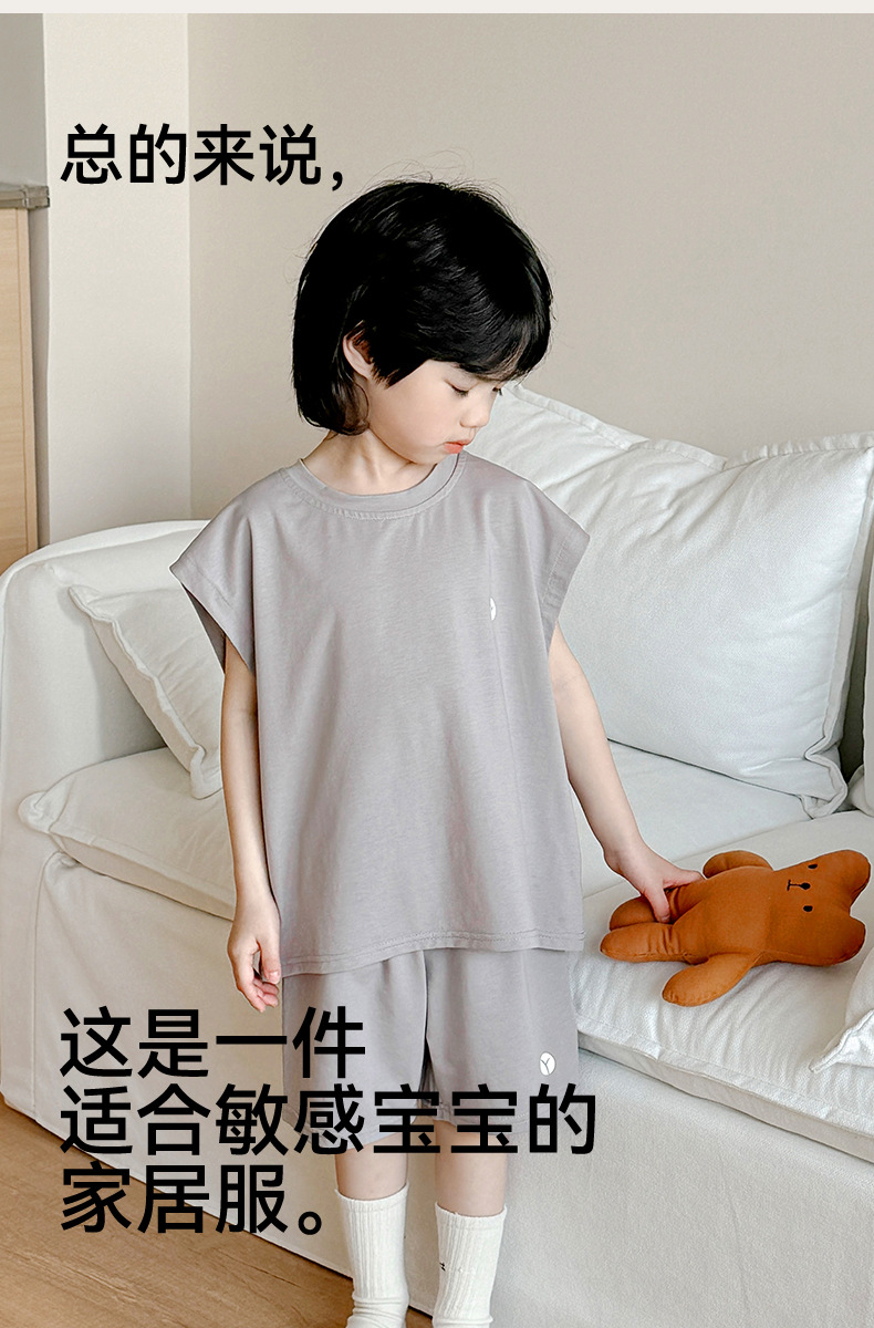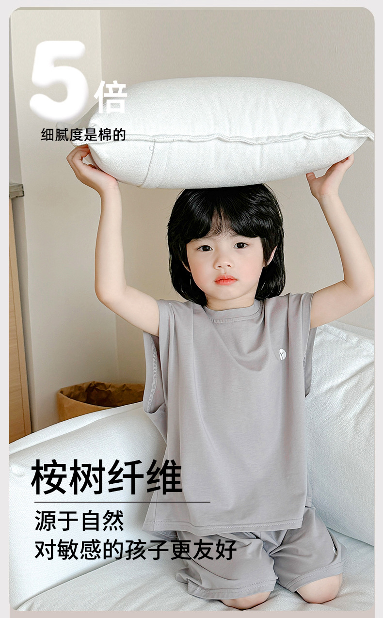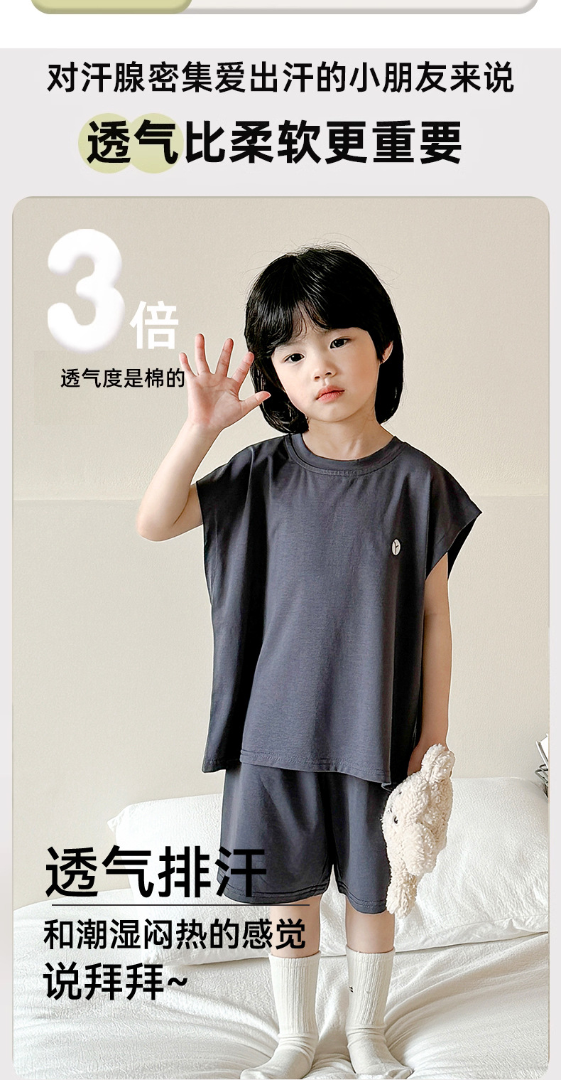 2-15세 소년 여름 멋진 조끼 반바지 부드러운 면 가정복 어린이 리오셀 통기성 및 편안한 잠옷