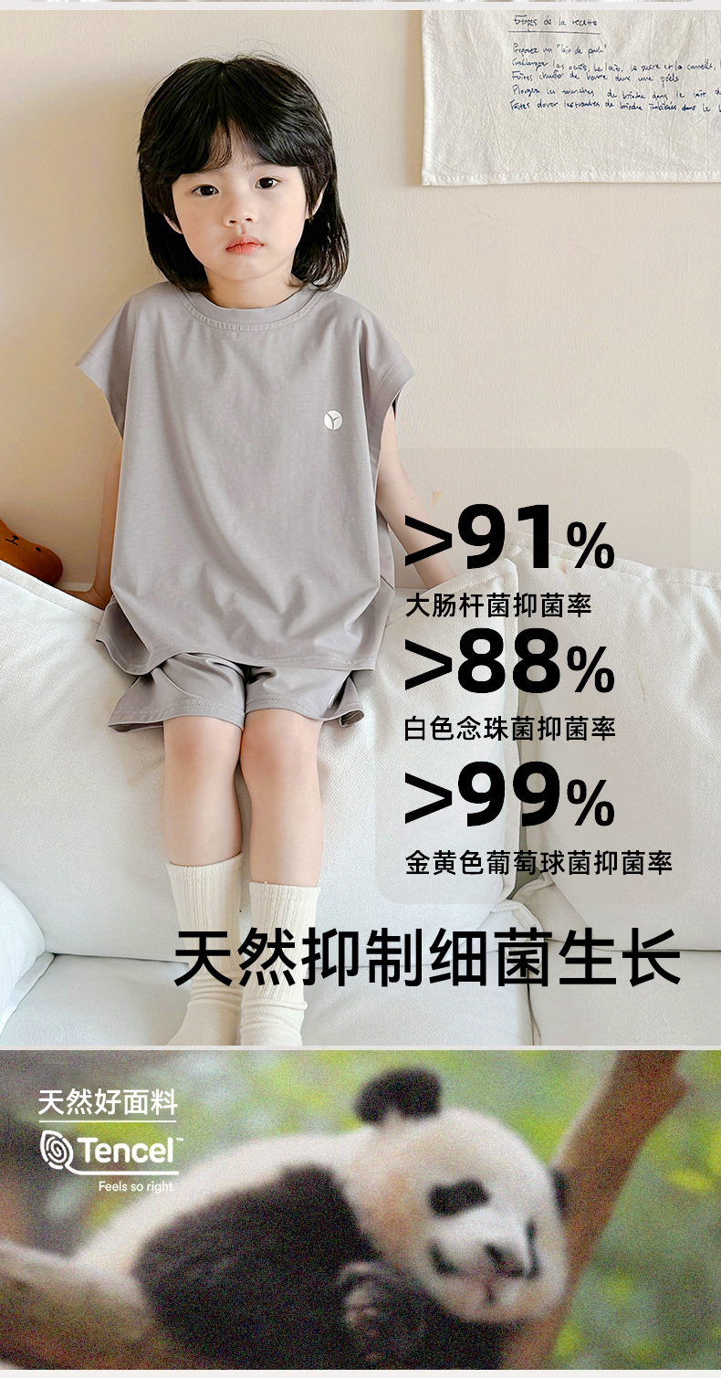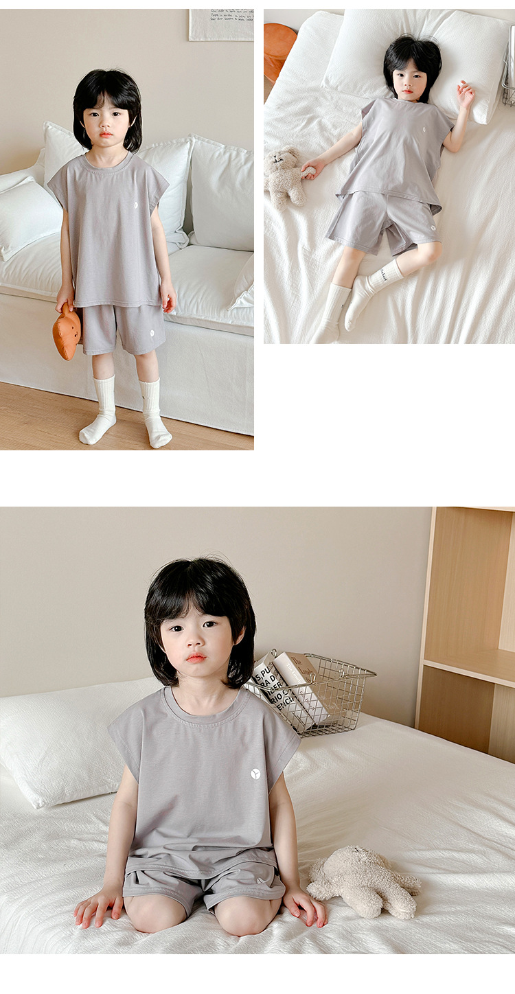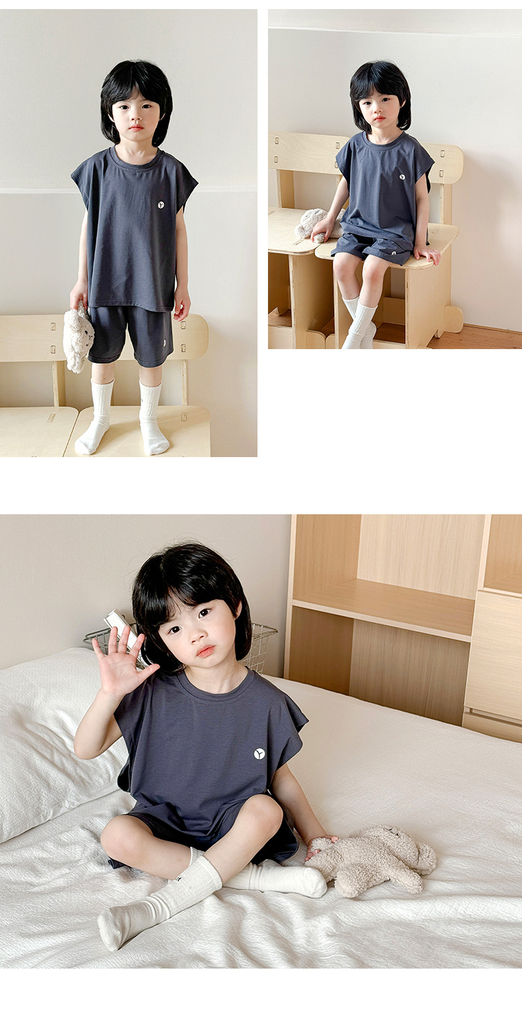 2-15세 소년 여름 멋진 조끼 반바지 부드러운 면 가정복 어린이 리오셀 통기성 및 편안한 잠옷