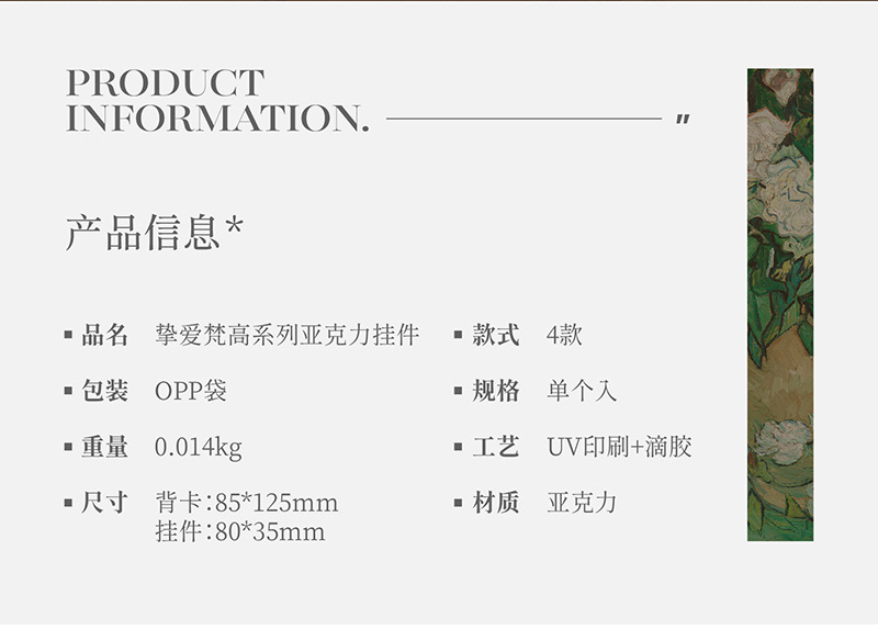 사랑하는 반 고흐 시리즈 아크릴 펜던트 오리지널 ins 스타일 고가치 다용도 키체인 배낭 장식 펜던트스토어 가기