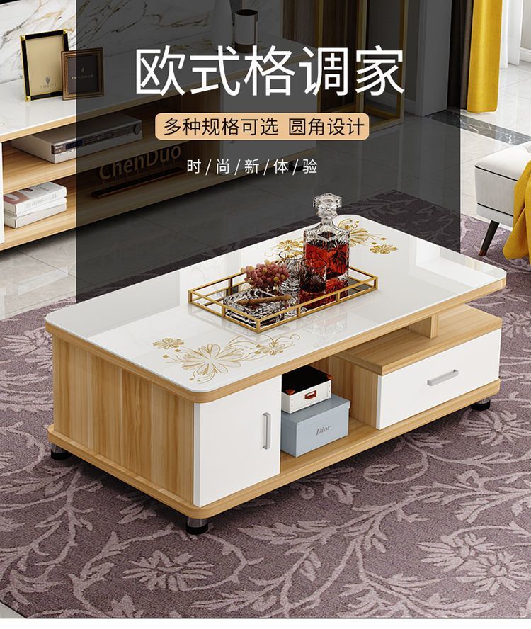 유럽 스타일의 둥근 커피 테이블 거실 홈 티 테이블 차 테이블 간단한 작은 아파트 강화 유리 직사각형 테이블 직접 판매스토어 가기