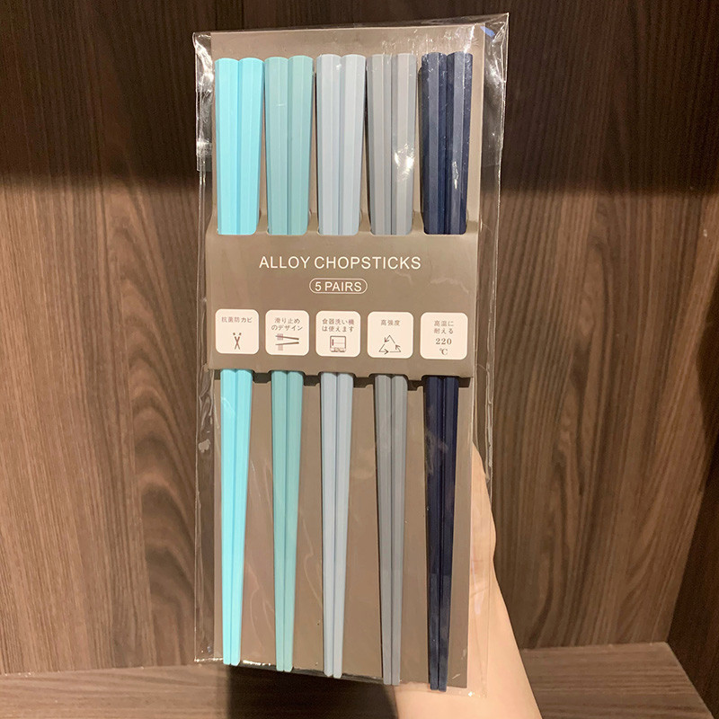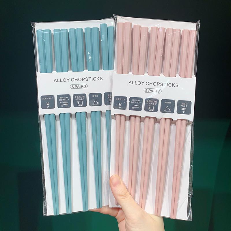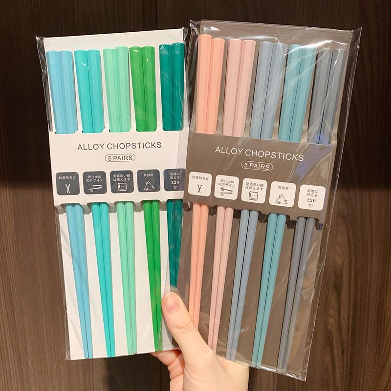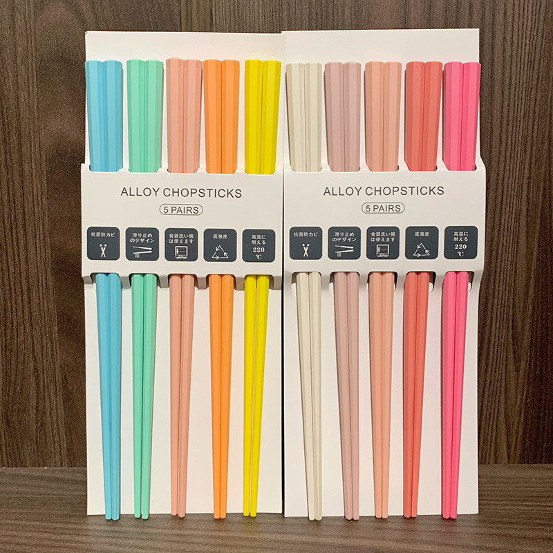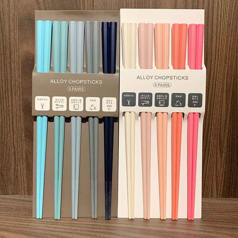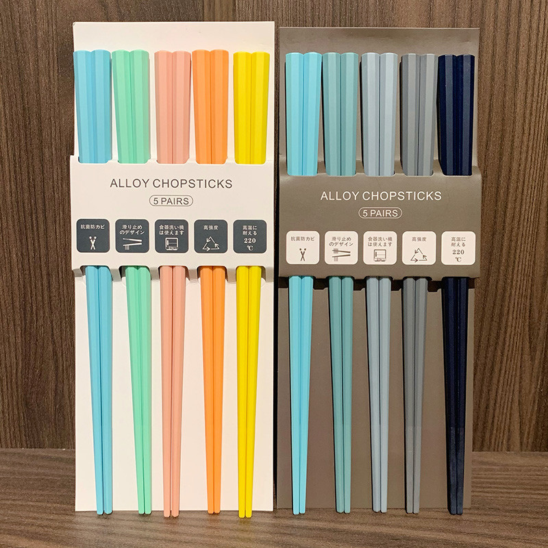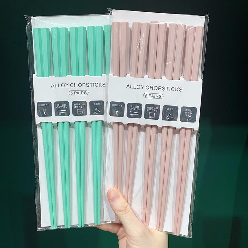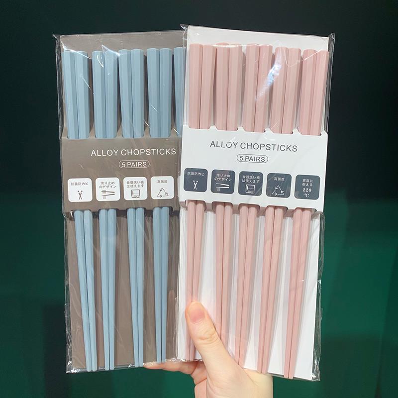 식기세척기 사용 가능 모란디 컬러 무도장 고온 방지 일본식 팔각형 젓가락 컬러 곰팡이 방지 합금 젓가락 세트