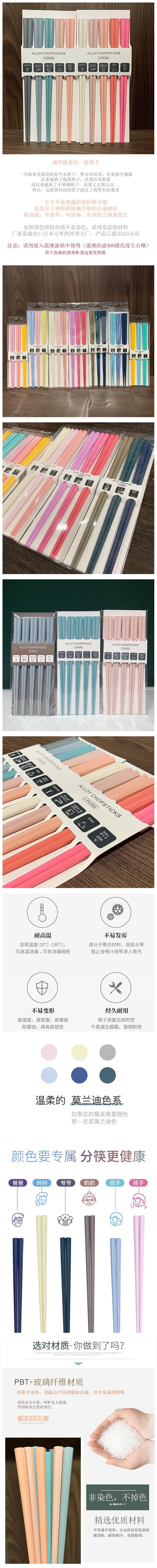 식기세척기 사용 가능 모란디 컬러 무도장 고온 방지 일본식 팔각형 젓가락 컬러 곰팡이 방지 합금 젓가락 세트스토어 가기