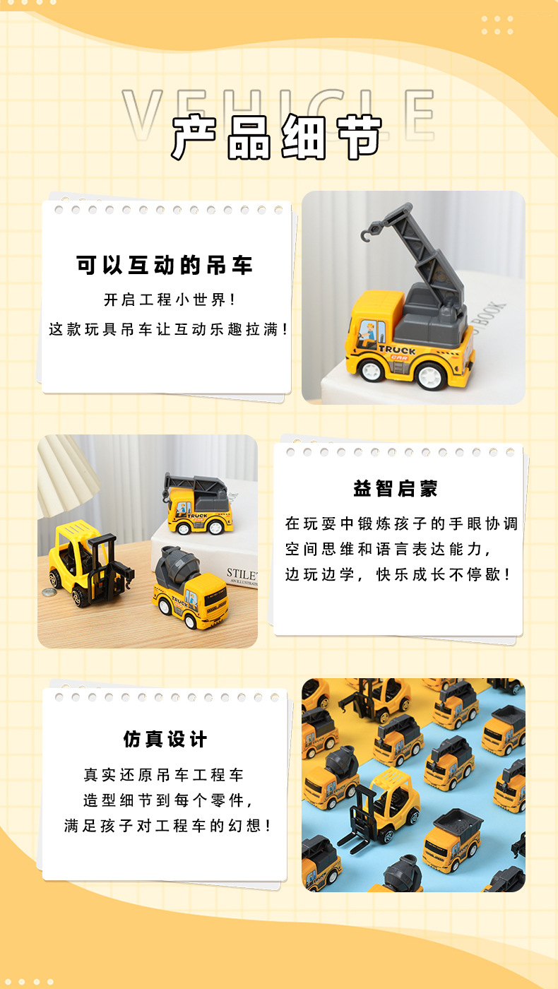 어린이 풀백 시뮬레이션 엔지니어링 자동차 가샤폰 장난감 굴삭기 믹서 불도저 후크 기계 크레인