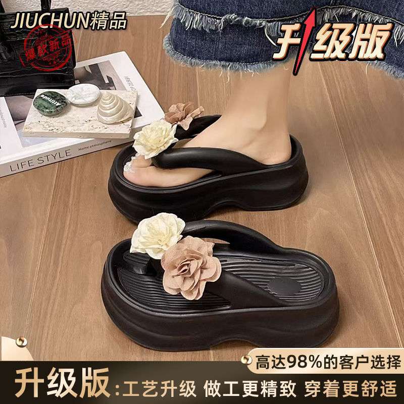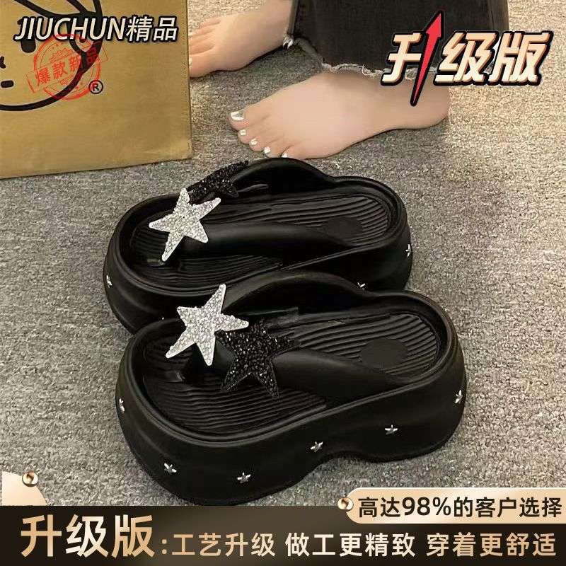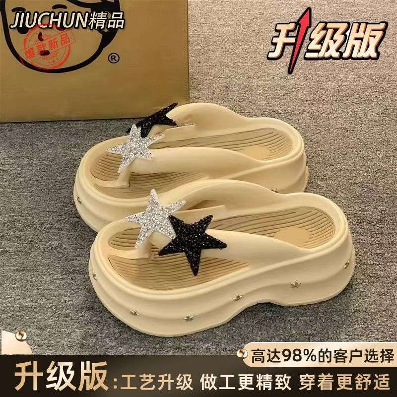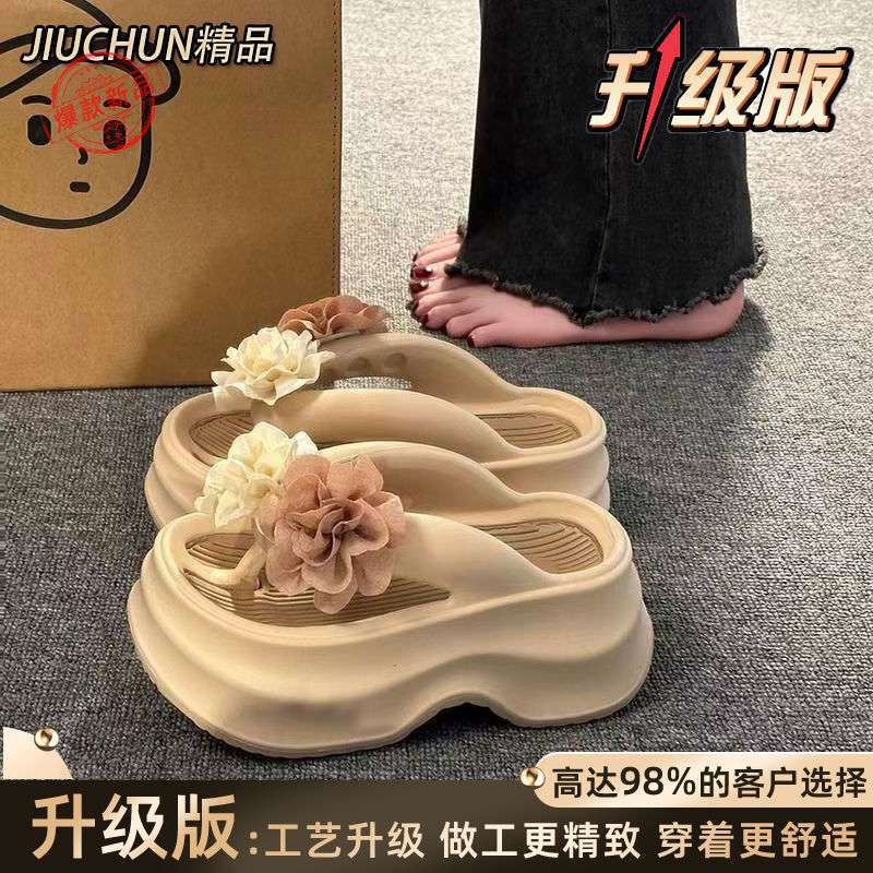 두꺼운 바닥 머핀 플립 플롭 여성 야외 2025 여름 새로운 패션 클립 발가락 스타 비치 한국식 샌들스토어 가기