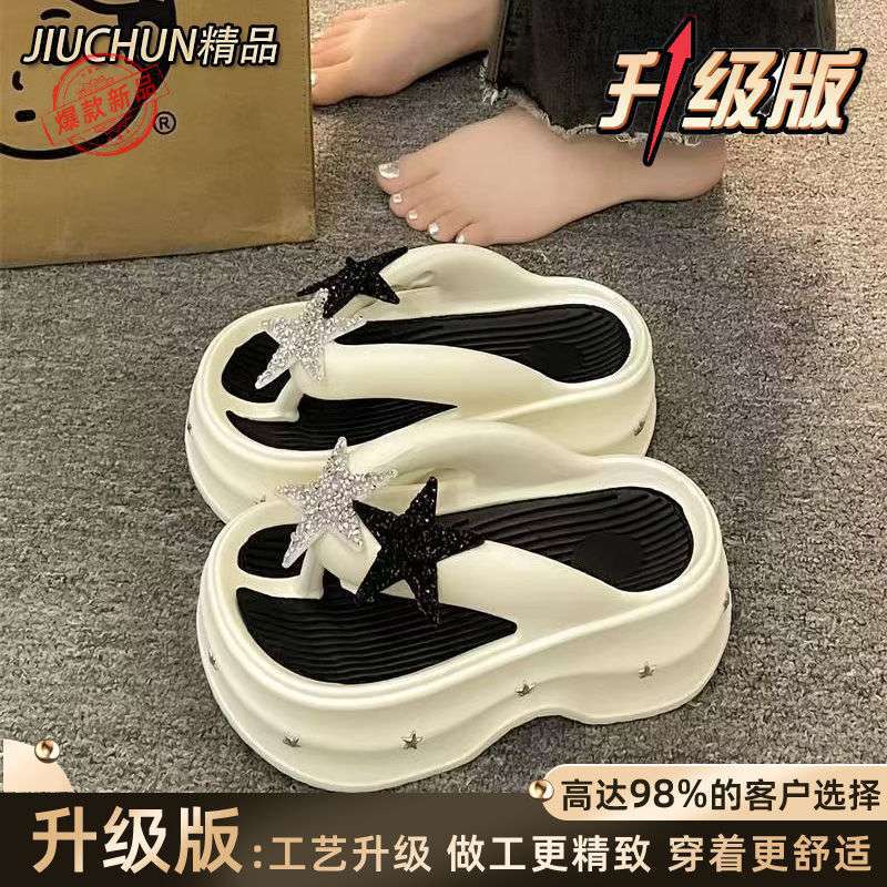 두꺼운 바닥 머핀 플립 플롭 여성 야외 2025 여름 새로운 패션 클립 발가락 스타 비치 한국식 샌들