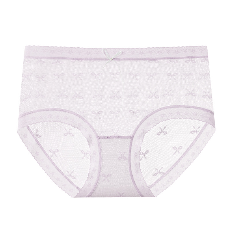 여성용 속옷 여름 얇은 자카드 레이스 여성용 메쉬 원활한 뽕나무면 요정 통기성 팬티 반바지 여름