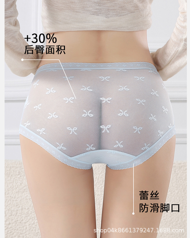여성용 속옷 여름 얇은 자카드 레이스 여성용 메쉬 원활한 뽕나무면 요정 통기성 팬티 반바지 여름스토어 가기