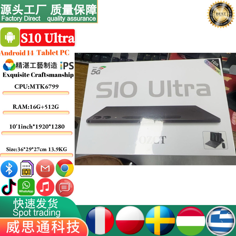 국경 간 S10ULTRA 태블릿 10.1inch 전체 시야각 원래 색상 눈 보호 화면 5GWIFI+2SIM 태블릿