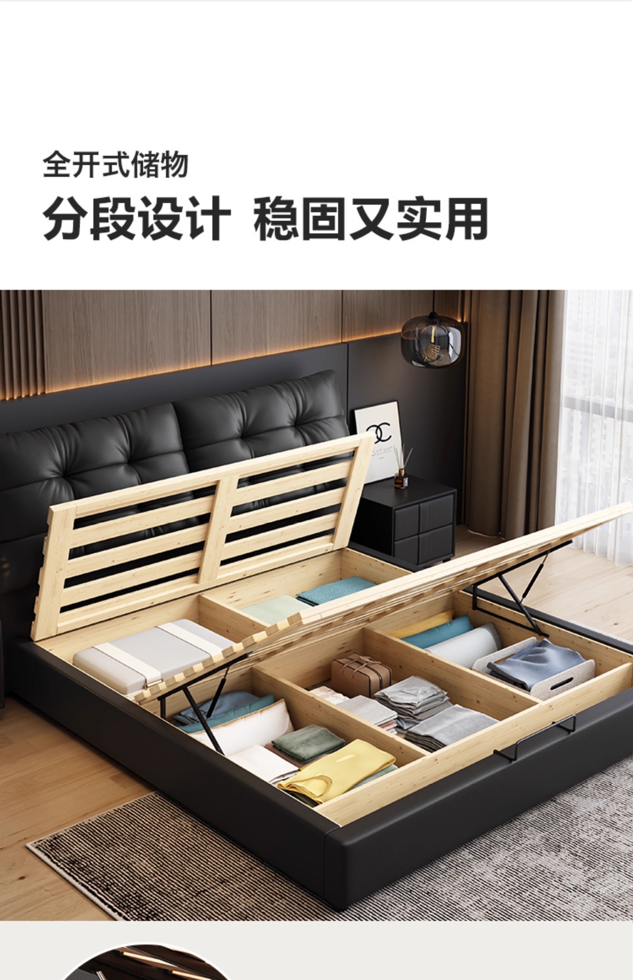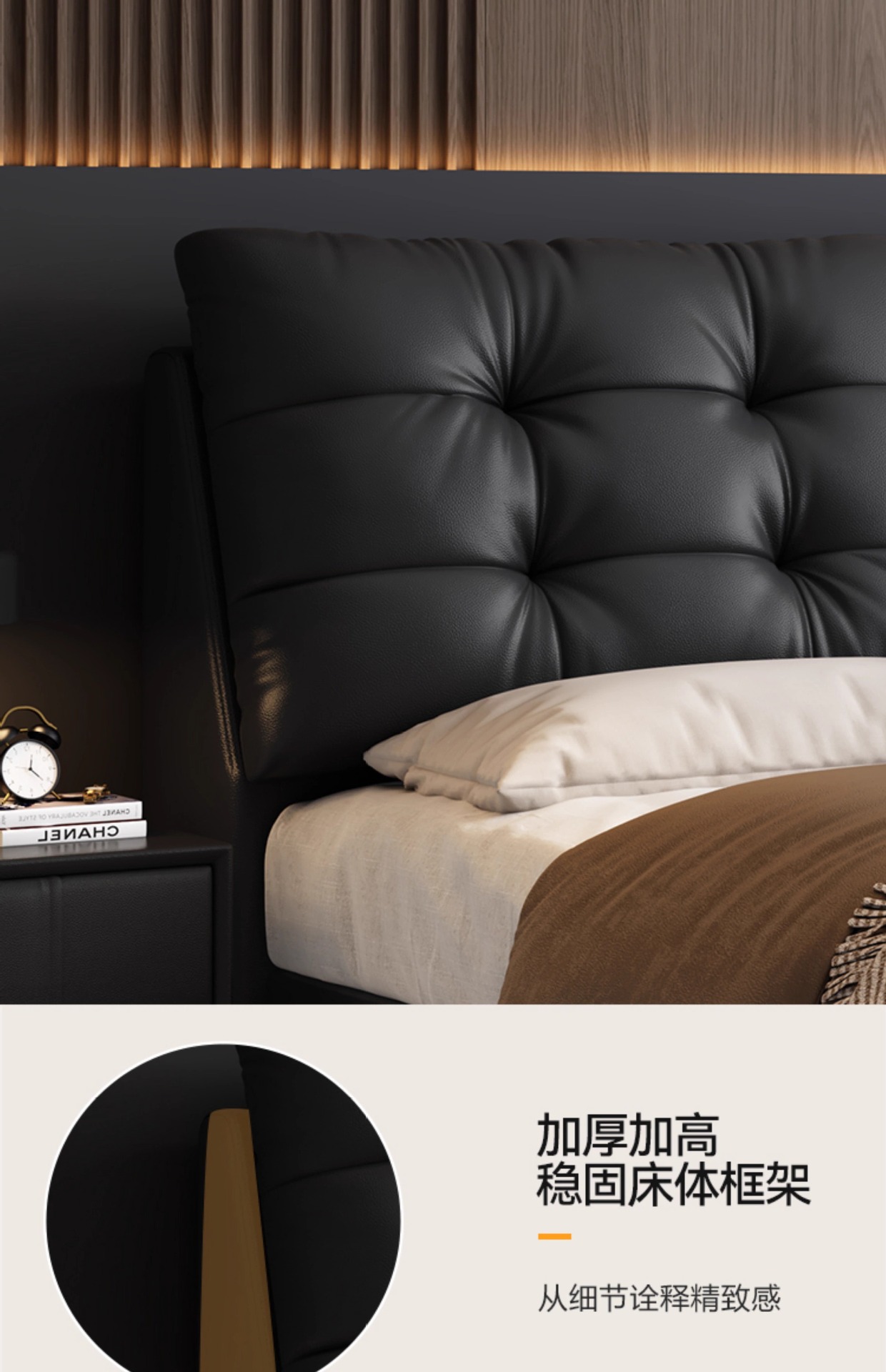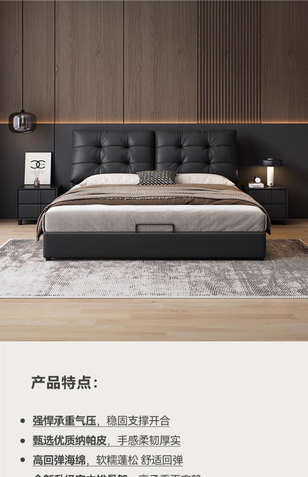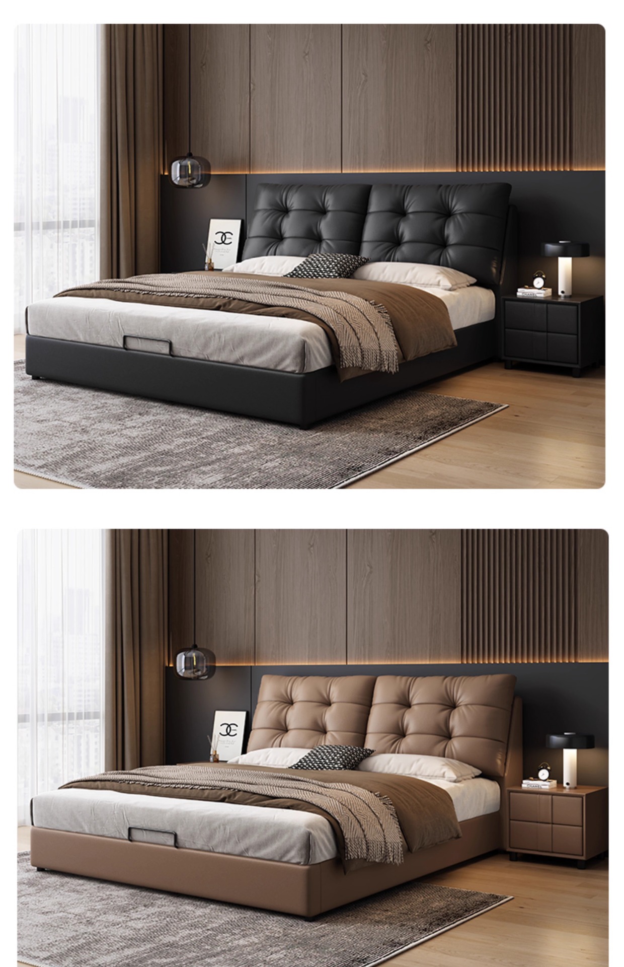 이탈리아 스타일 미니멀리스트 가죽 침대 현대 미니멀리스트 소프트 백 더블 침대 작은 아파트 보관 웨딩 침대 레트로 마스터 침실 큰 침대