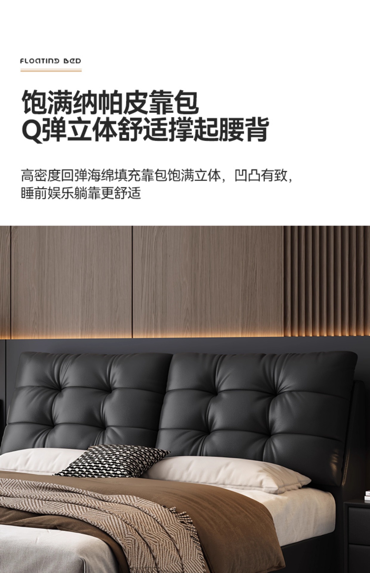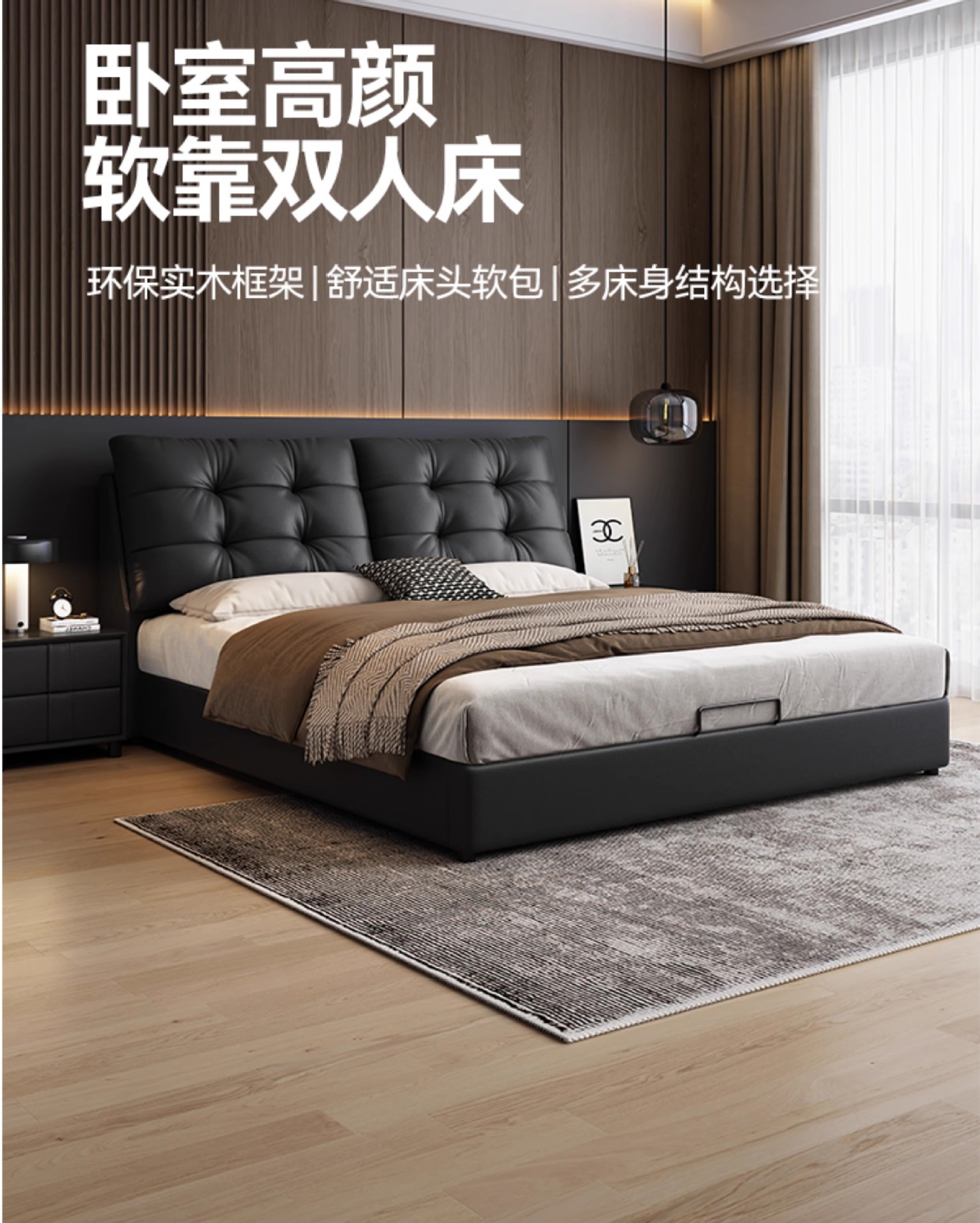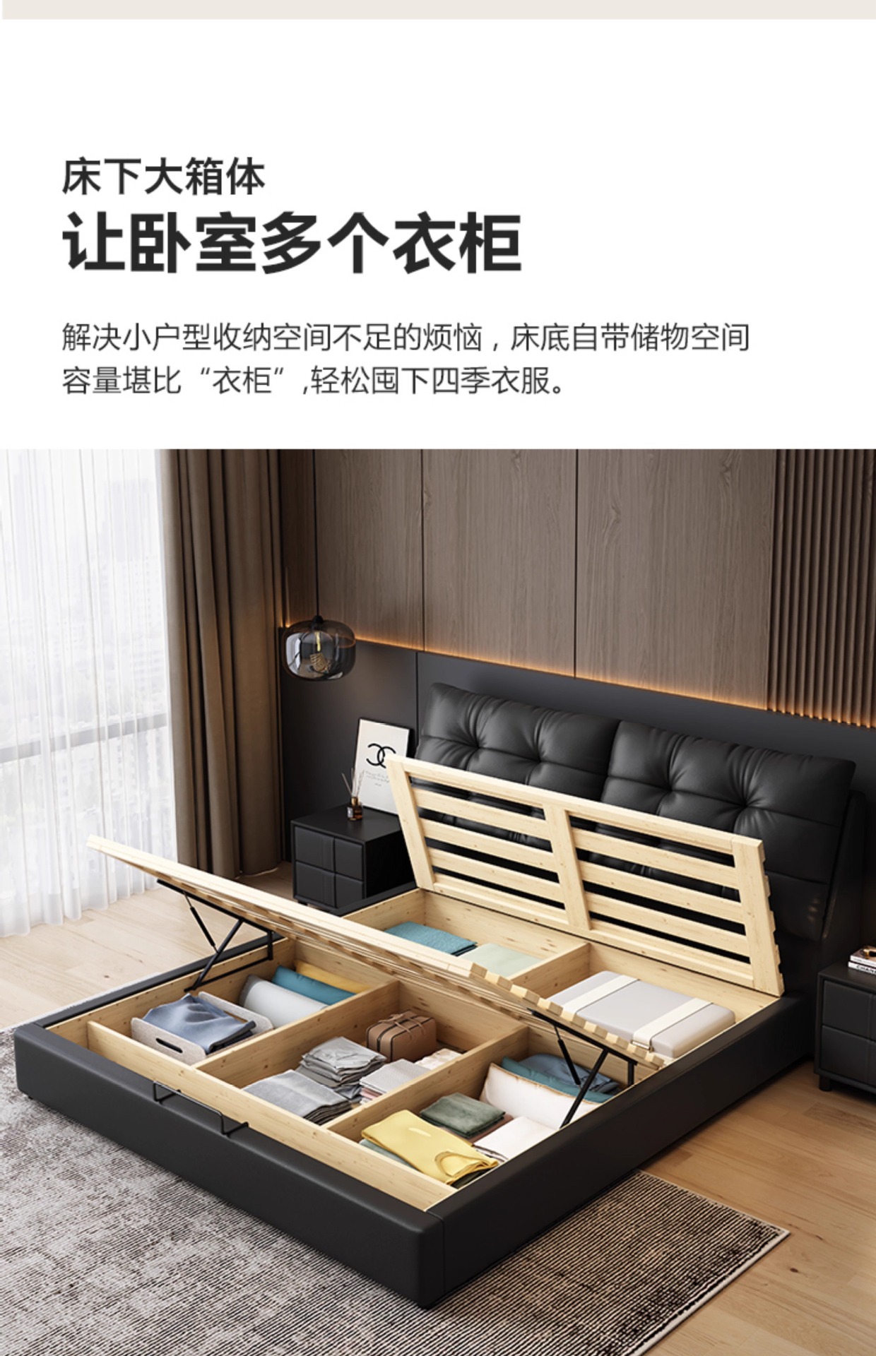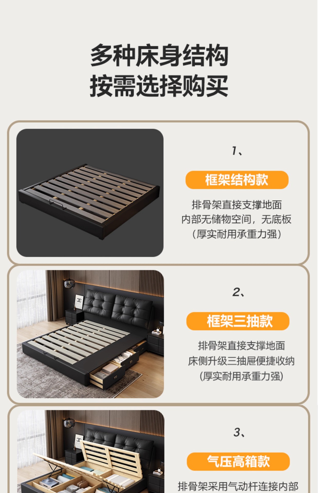 이탈리아 스타일 미니멀리스트 가죽 침대 현대 미니멀리스트 소프트 백 더블 침대 작은 아파트 보관 웨딩 침대 레트로 마스터 침실 큰 침대