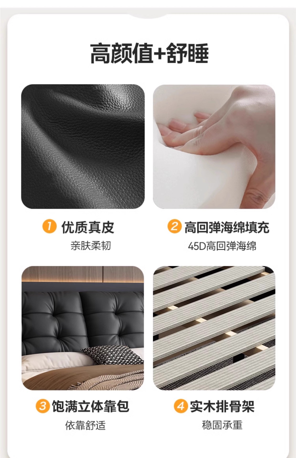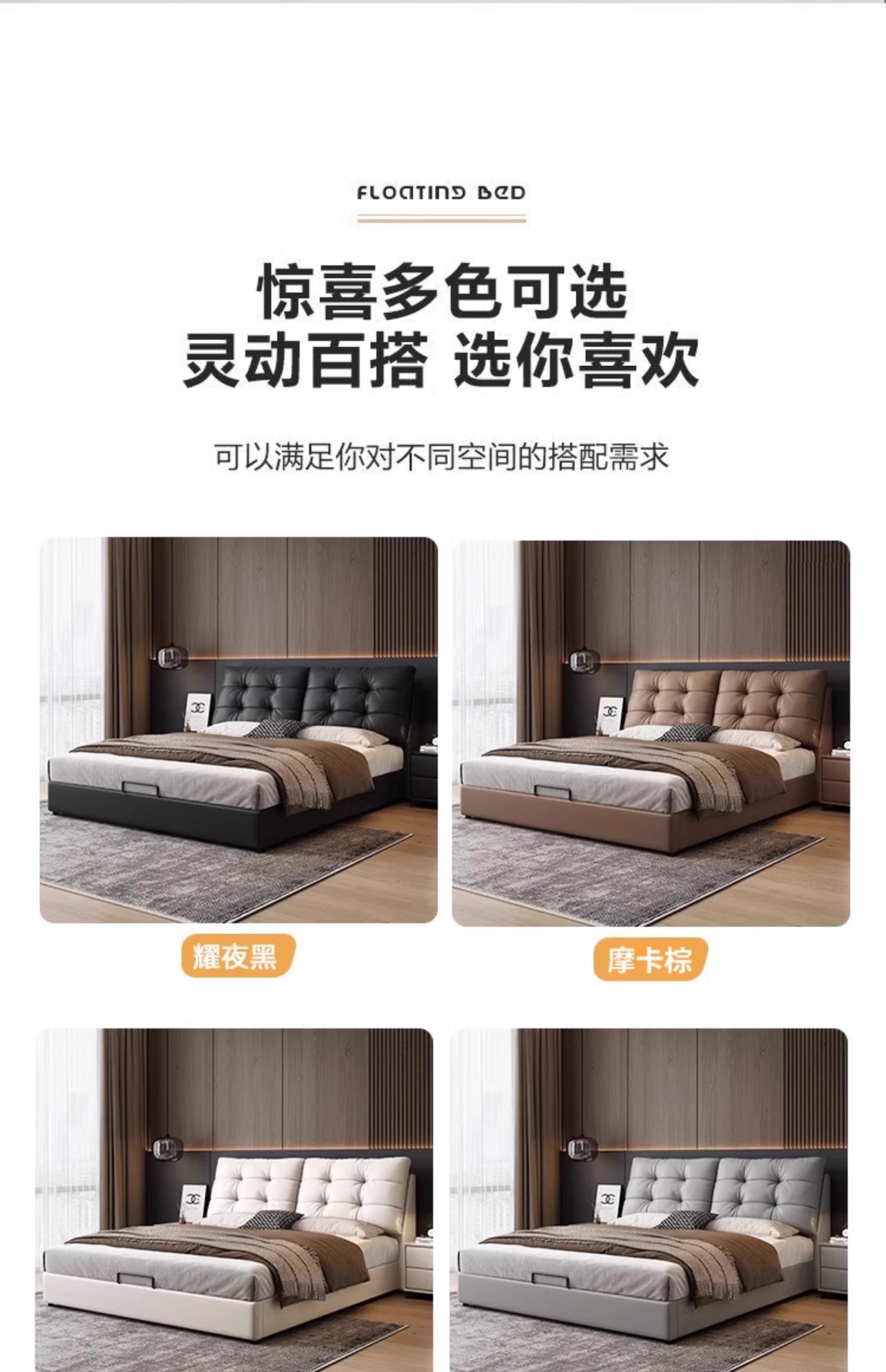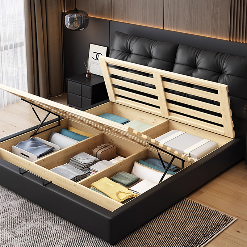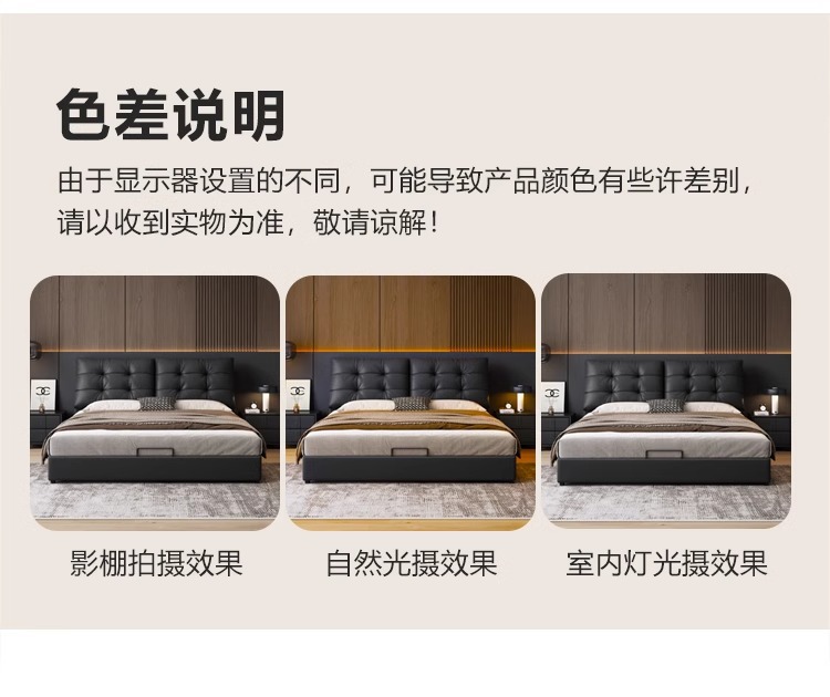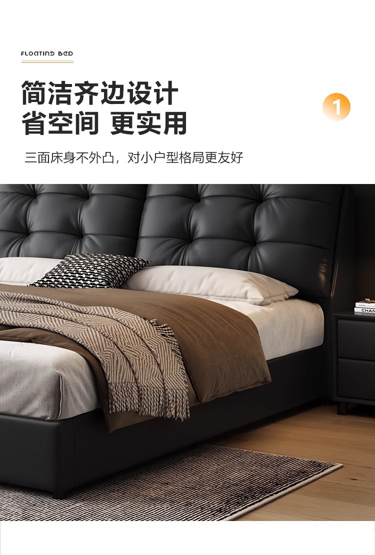 이탈리아 스타일 미니멀리스트 가죽 침대 현대 미니멀리스트 소프트 백 더블 침대 작은 아파트 보관 웨딩 침대 레트로 마스터 침실 큰 침대