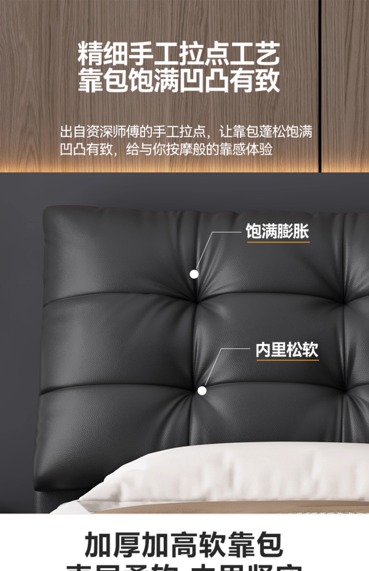 이탈리아 스타일 미니멀리스트 가죽 침대 현대 미니멀리스트 소프트 백 더블 침대 작은 아파트 보관 웨딩 침대 레트로 마스터 침실 큰 침대스토어 가기