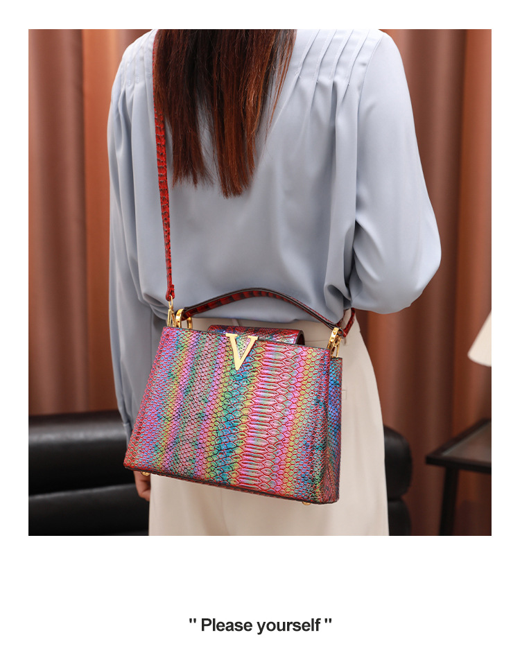 새로운 스타일의 심플하고 분위기 있는 핸드백 크로스보더 패션 한국식 뱀무늬 싱글 숄더 크로스바디 여성용 가방 대외 무역 도매
