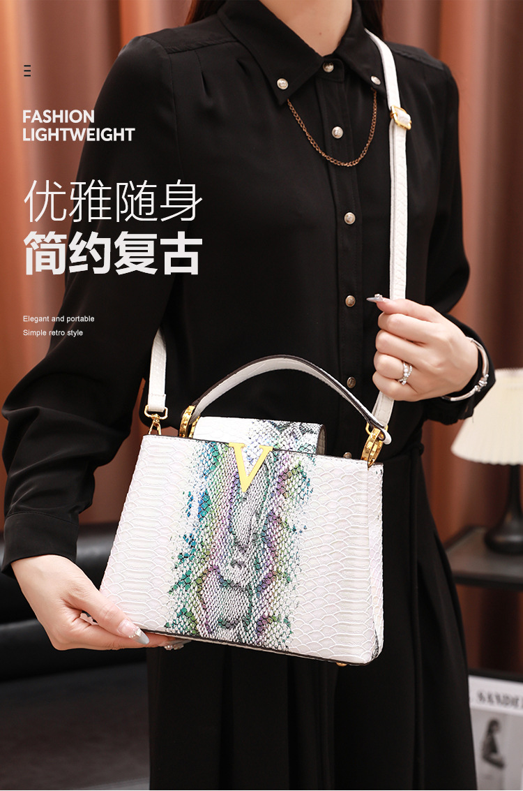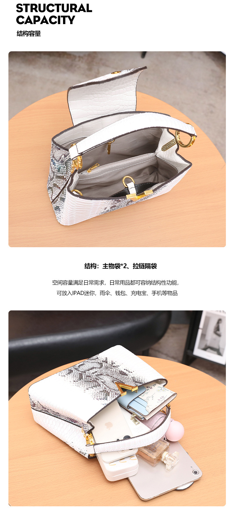 새로운 스타일의 심플하고 분위기 있는 핸드백 크로스보더 패션 한국식 뱀무늬 싱글 숄더 크로스바디 여성용 가방 대외 무역 도매스토어 가기