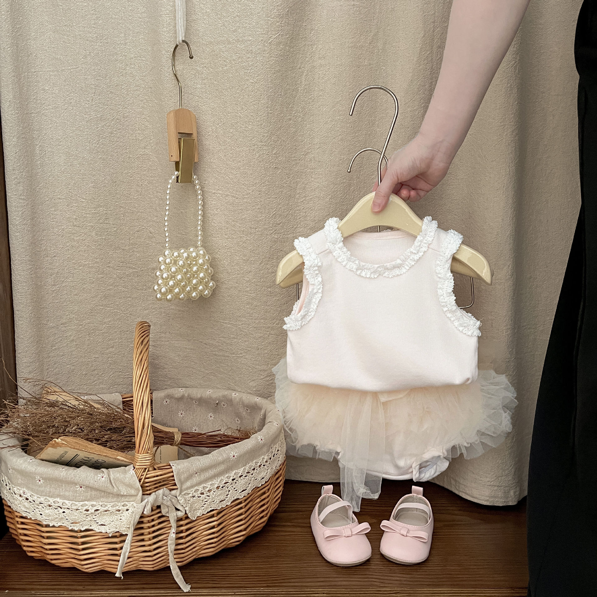 아기 옷 여름 얇은 양복 아기 소녀 달콤한 공주 퍼프 거즈 스커트 민소매 조끼 한 살짜리 외출복