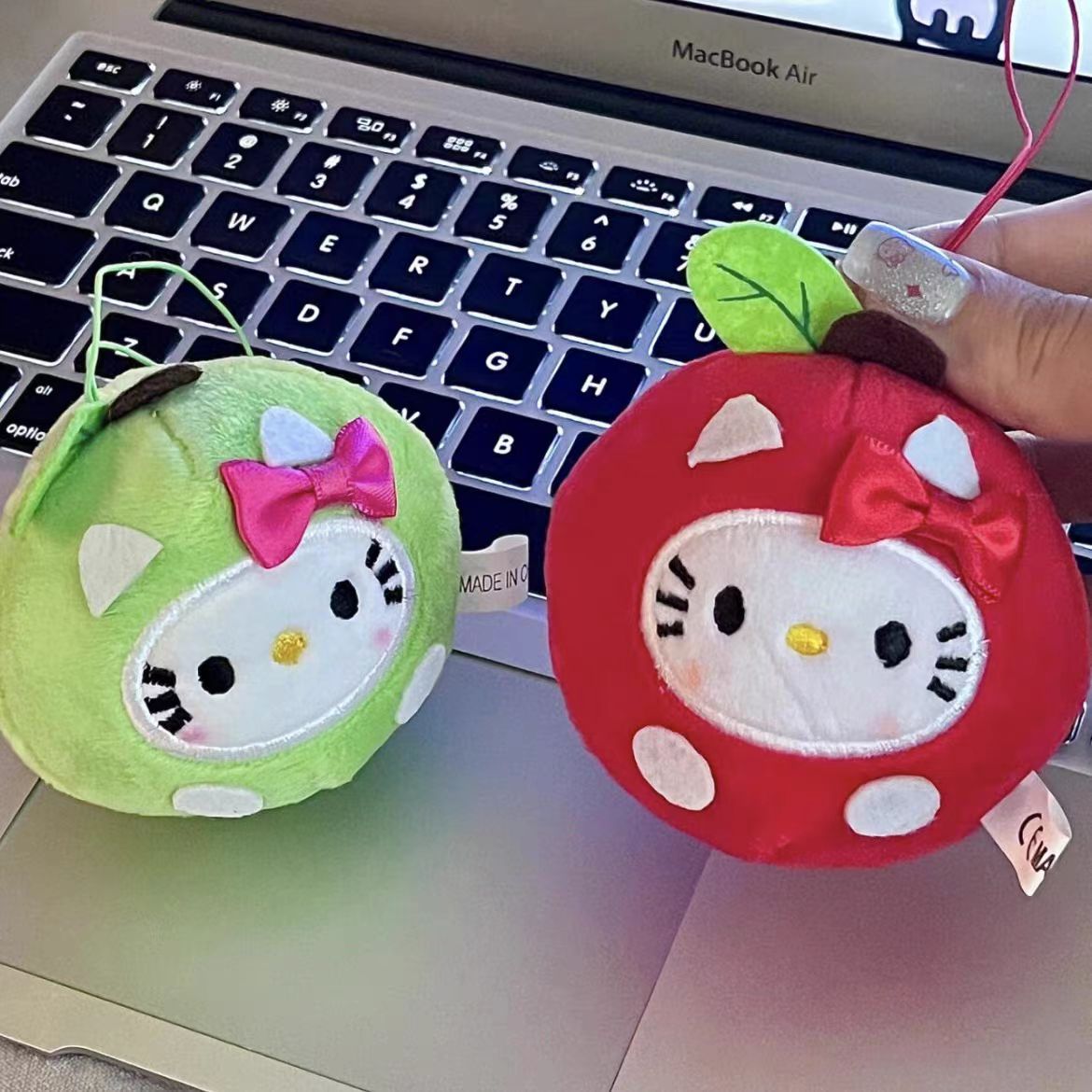 일본 산리오 헬로 키티 펜던트 애플 헤드 KT 고양이 봉제 인형 여자 친구 가방 작은 펜던트스토어 가기