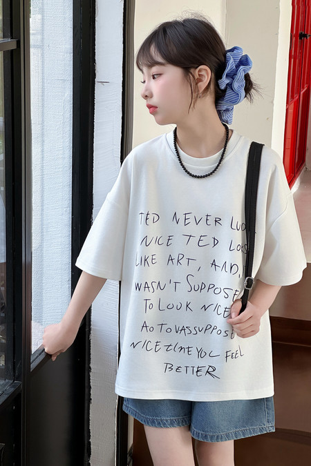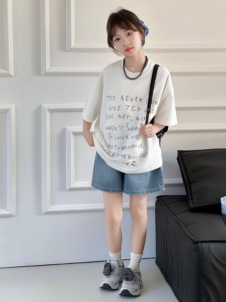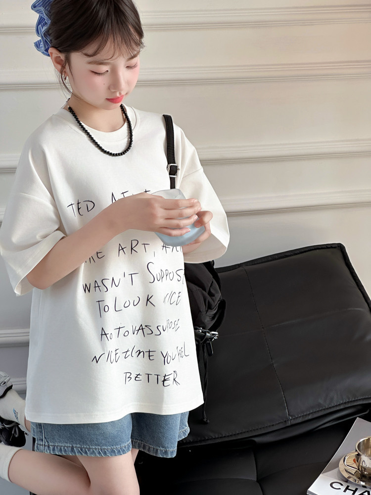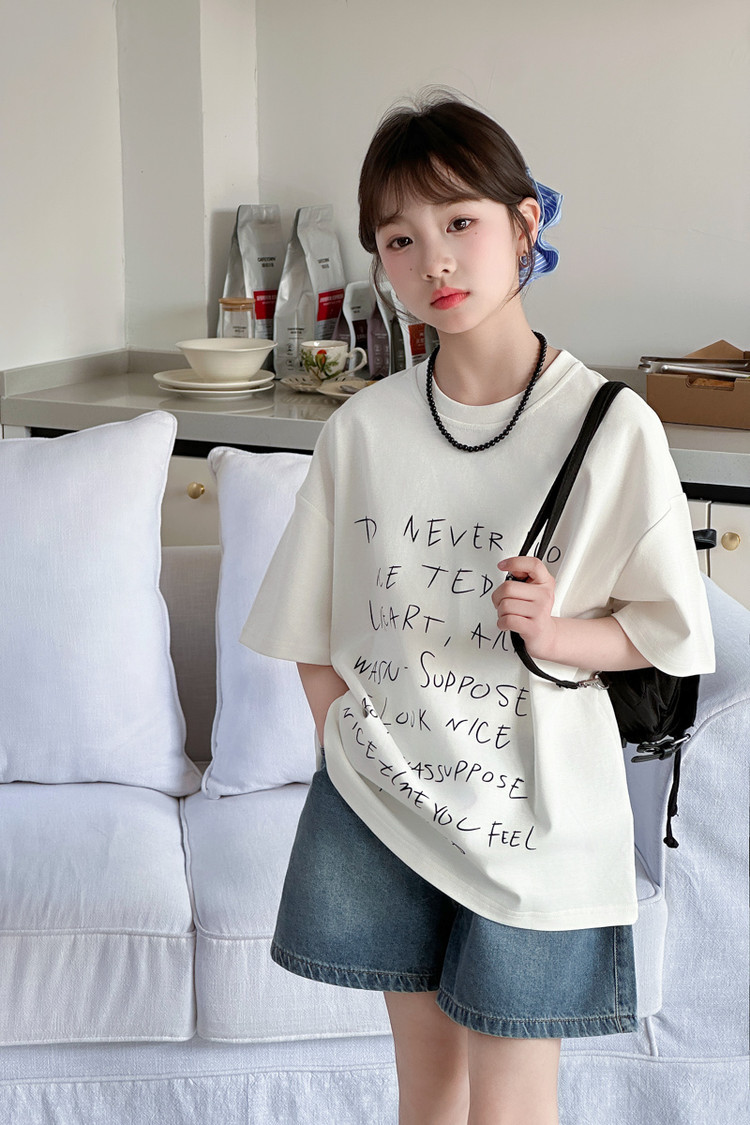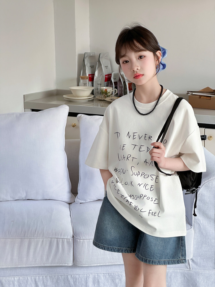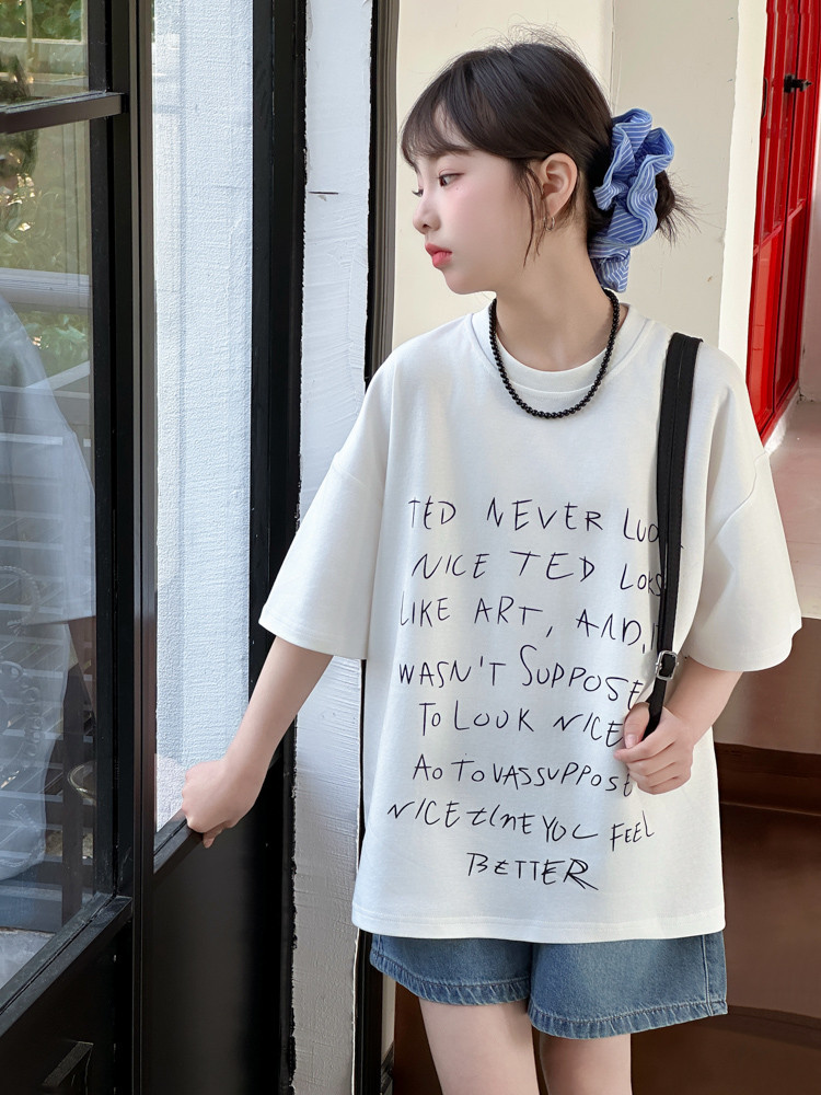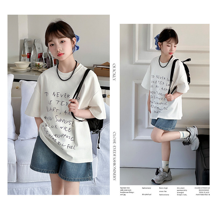 크로스보더걸스 반팔 티셔츠 세트 2025 년 여름 신입 한국식 올매치 반소매 티셔츠 루즈탑스토어 가기