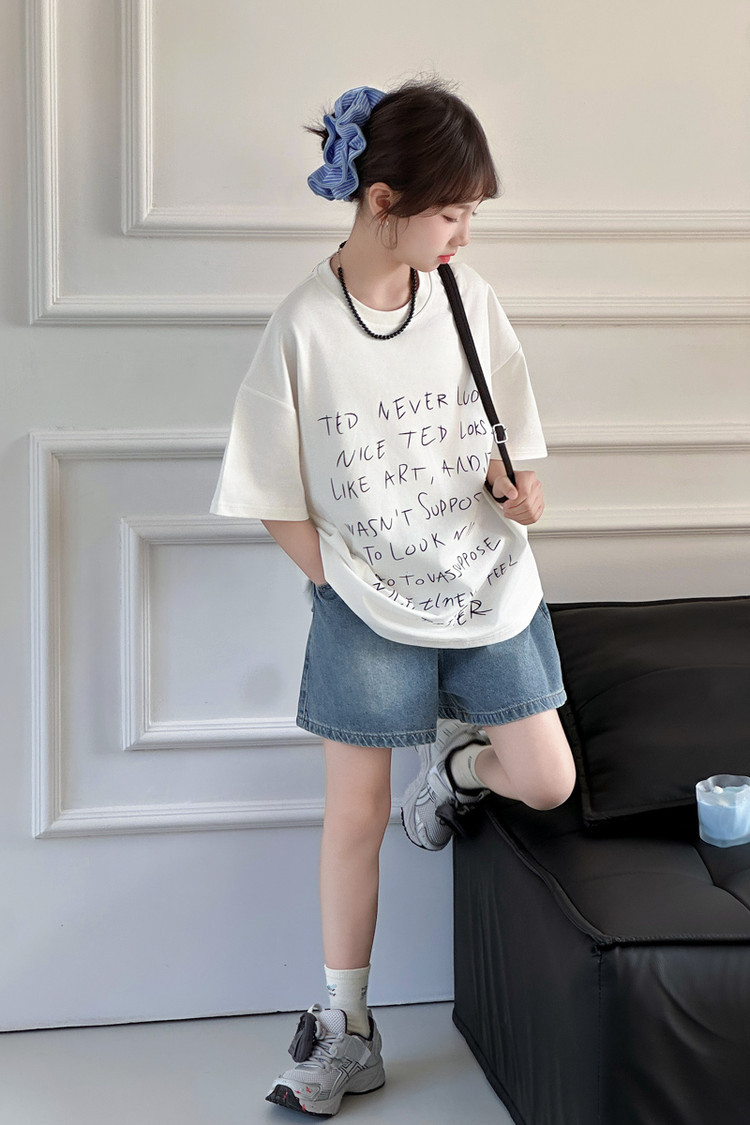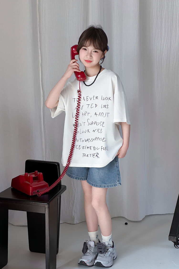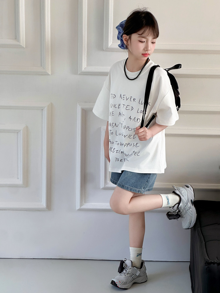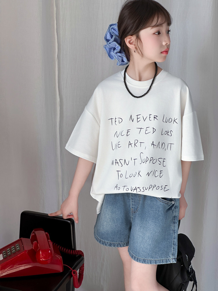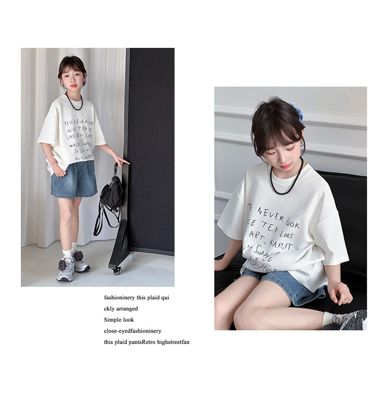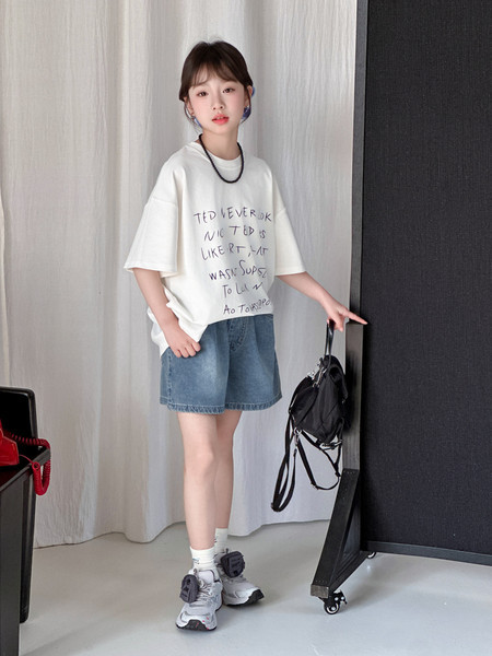 크로스보더걸스 반팔 티셔츠 세트 2025 년 여름 신입 한국식 올매치 반소매 티셔츠 루즈탑스토어 가기