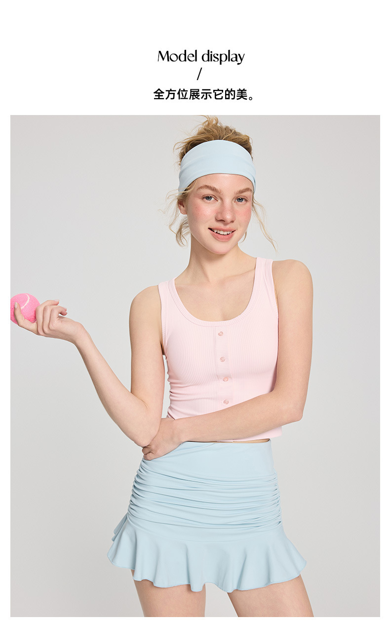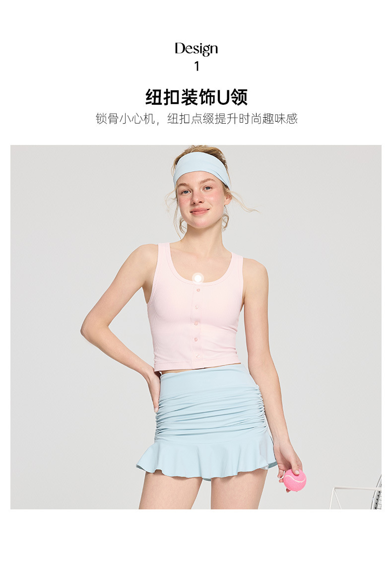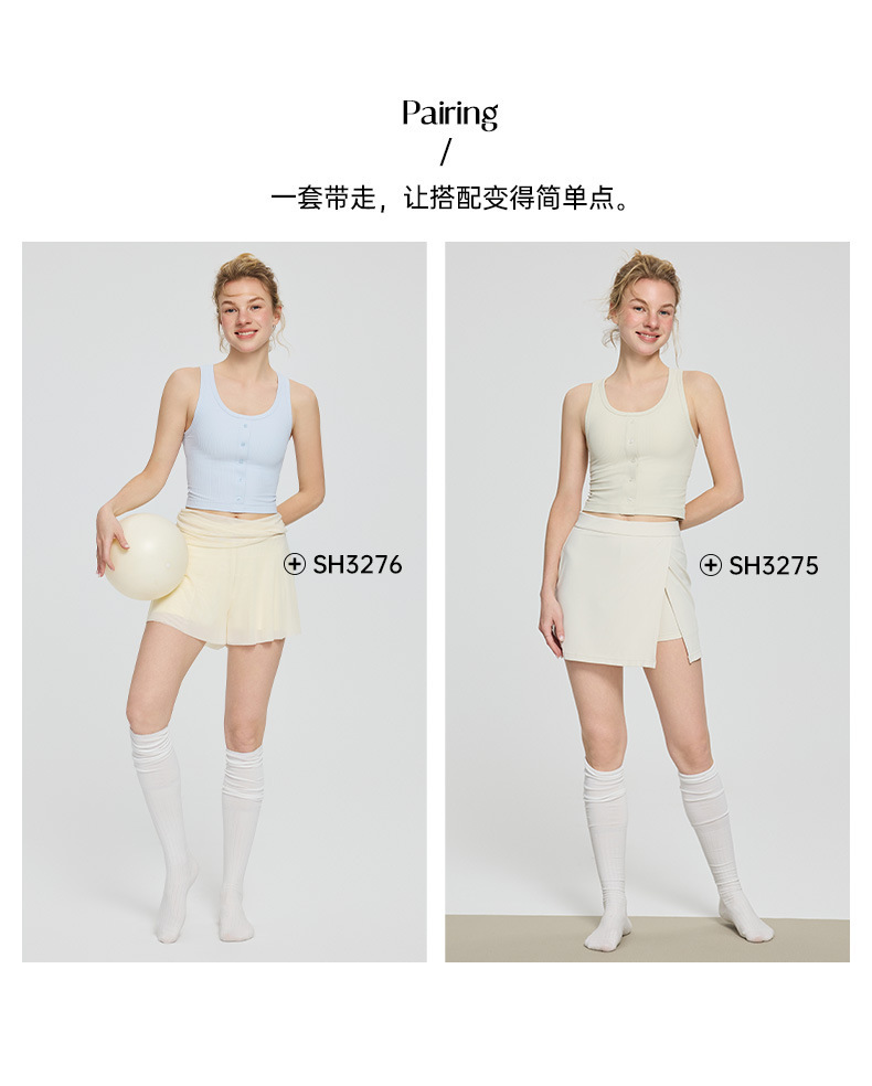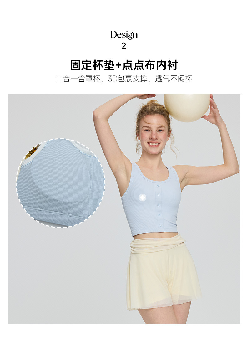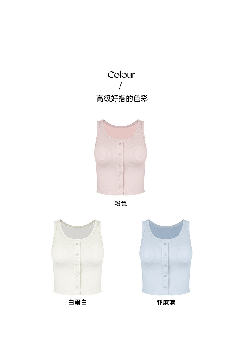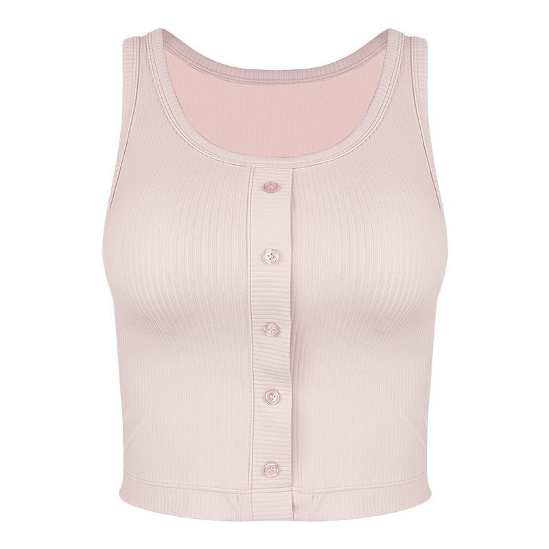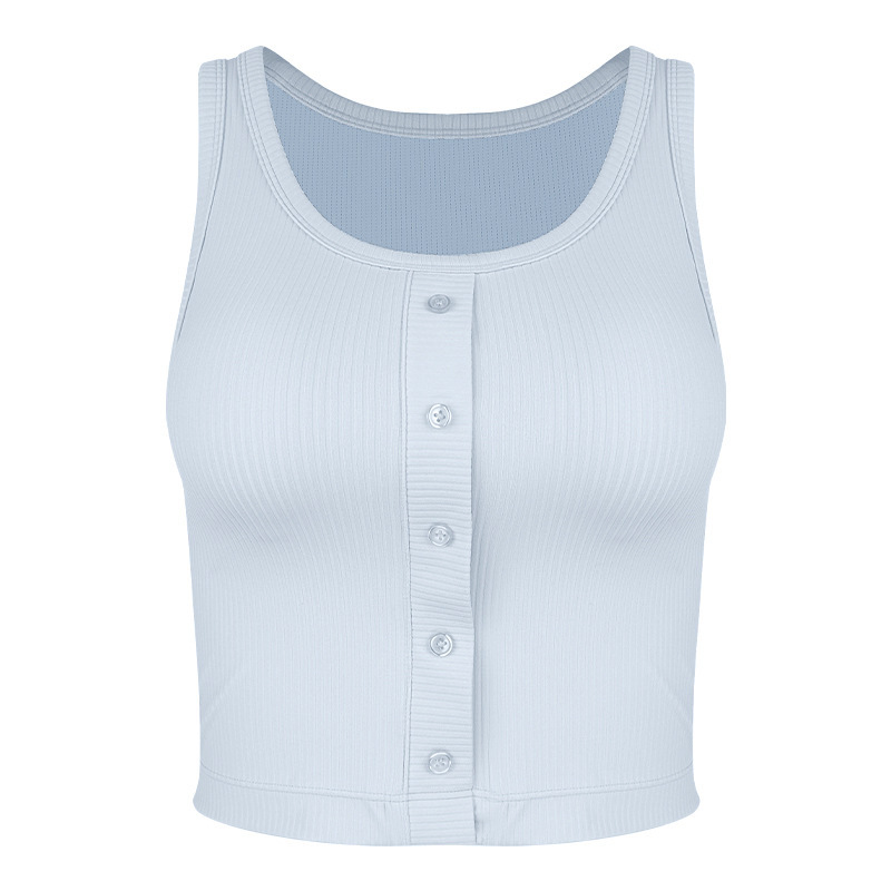 2026 봄 신상품 여성용 요가복 가슴 패드가 있는 조끼형 탑, 가짜 단추 장식 피트니스복, 샤오싱 스판덱스 피트니스복