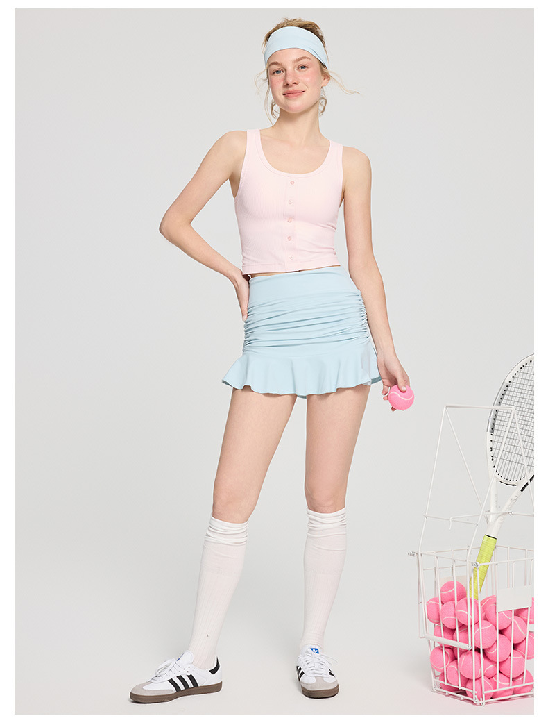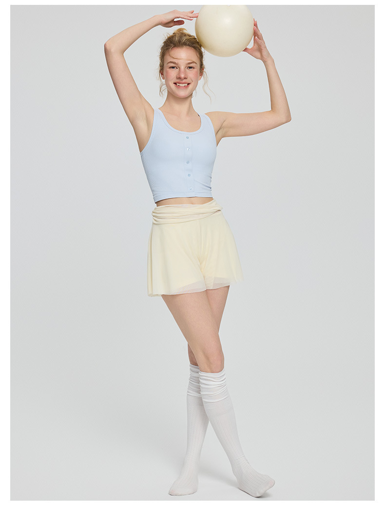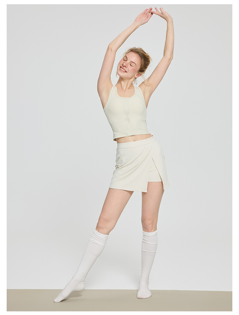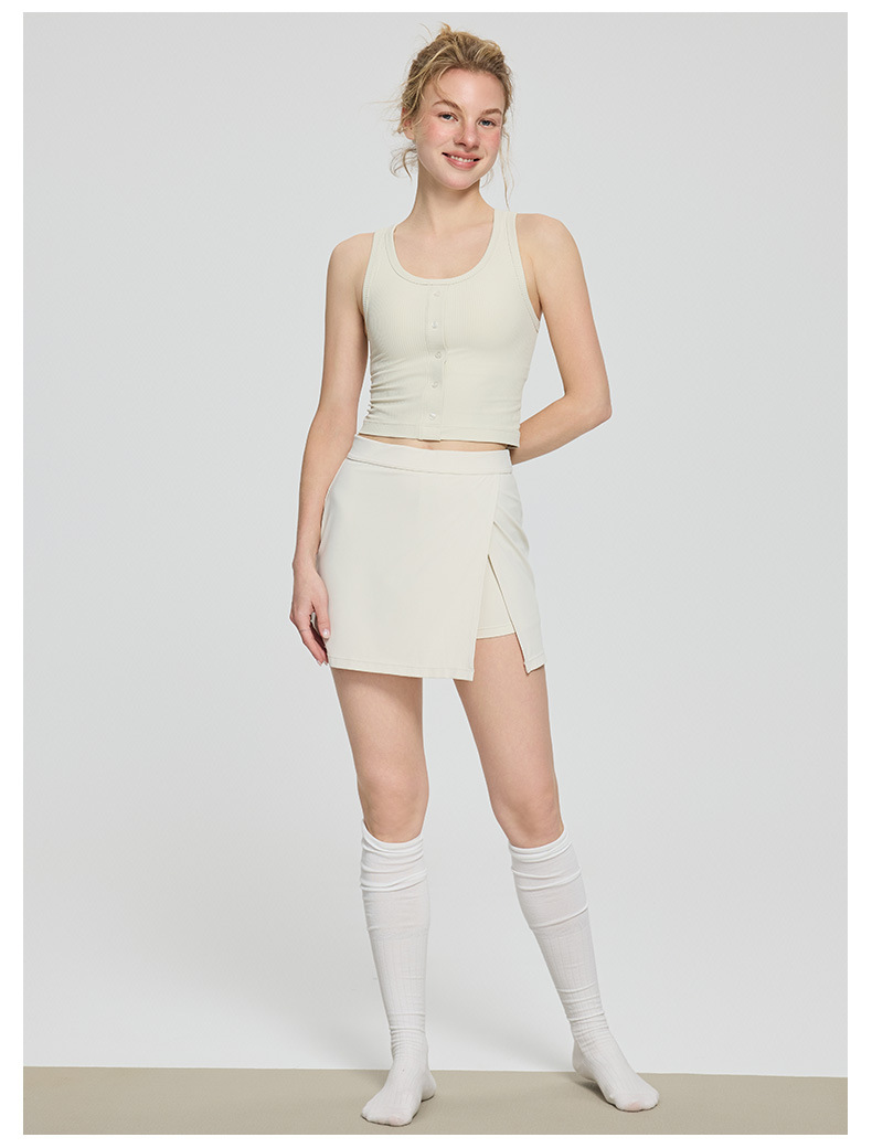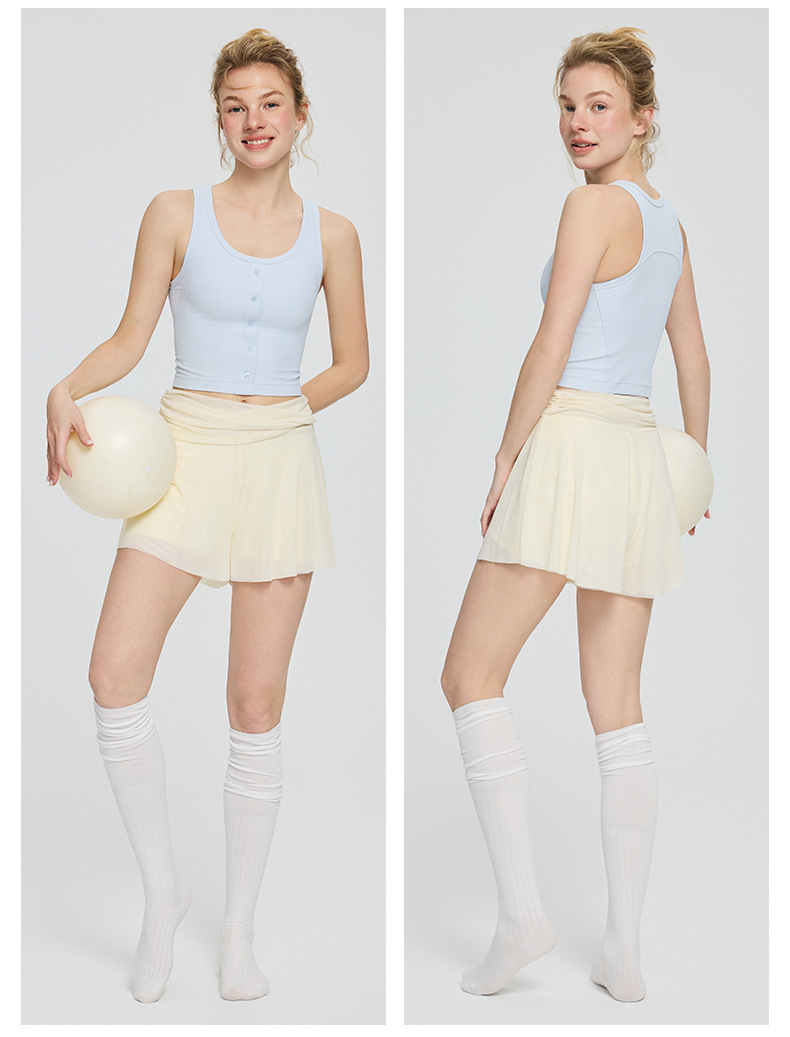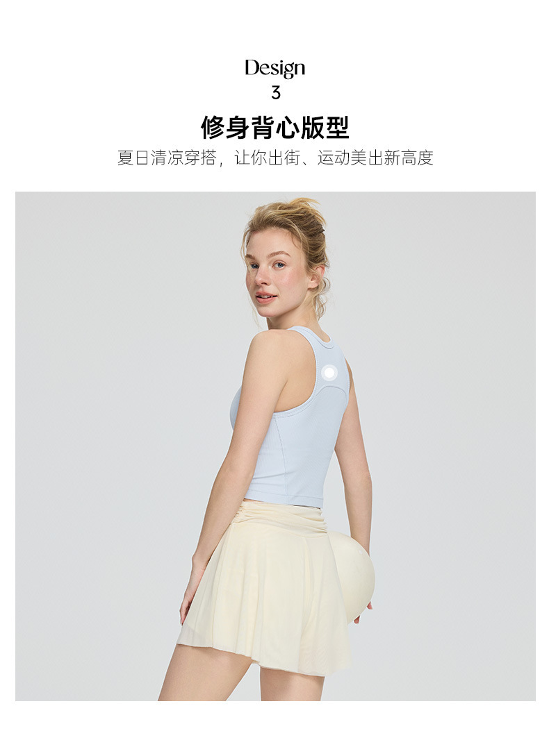 2026 봄 신상품 여성용 요가복 가슴 패드가 있는 조끼형 탑, 가짜 단추 장식 피트니스복, 샤오싱 스판덱스 피트니스복