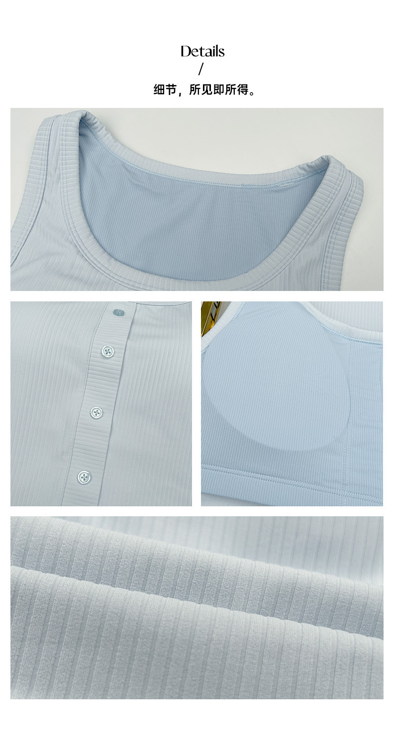 2026 봄 신상품 여성용 요가복 가슴 패드가 있는 조끼형 탑, 가짜 단추 장식 피트니스복, 샤오싱 스판덱스 피트니스복스토어 가기