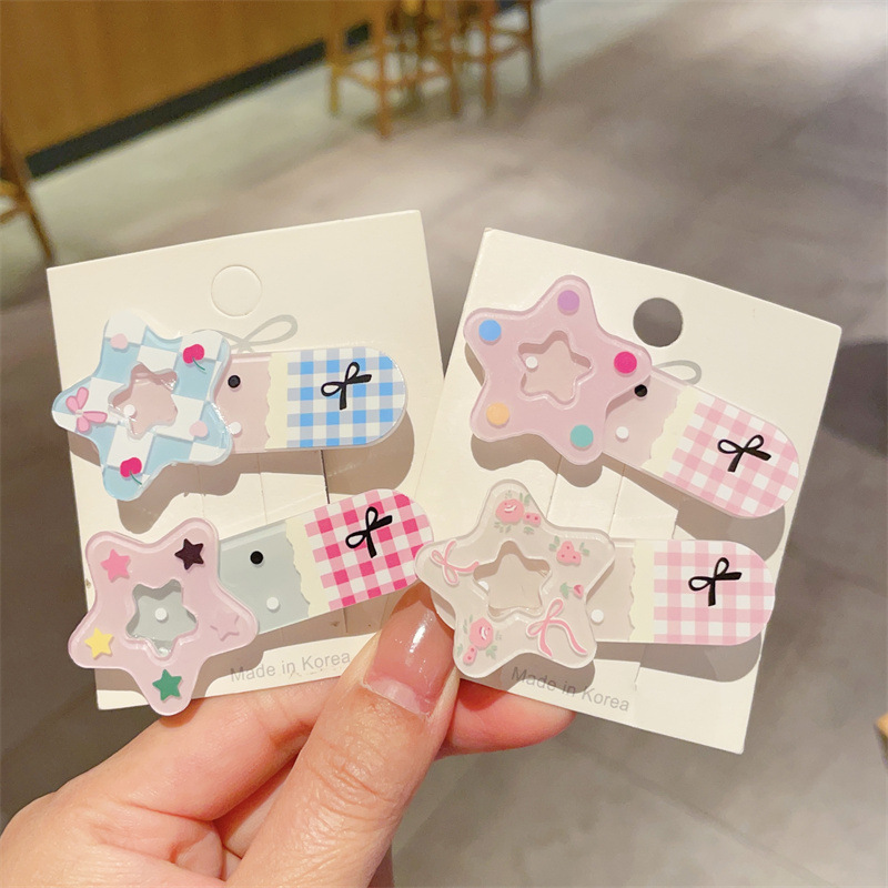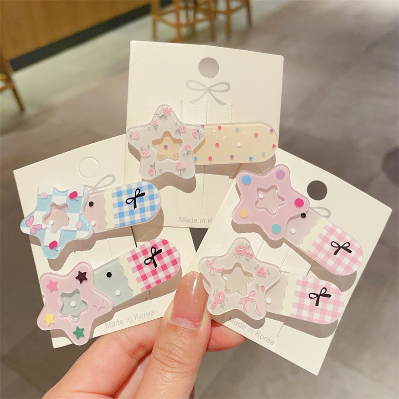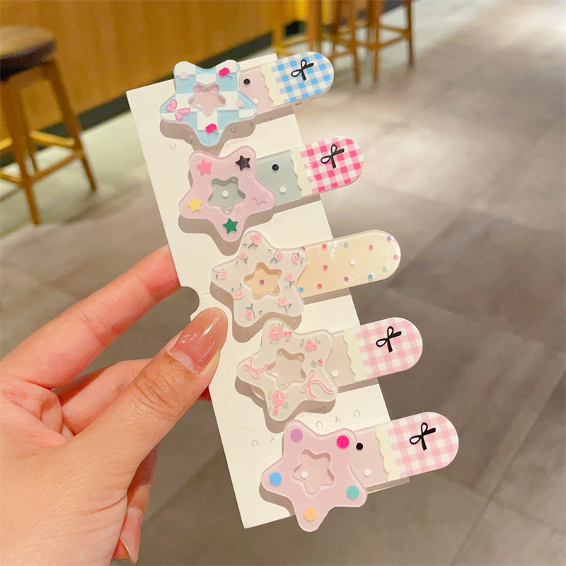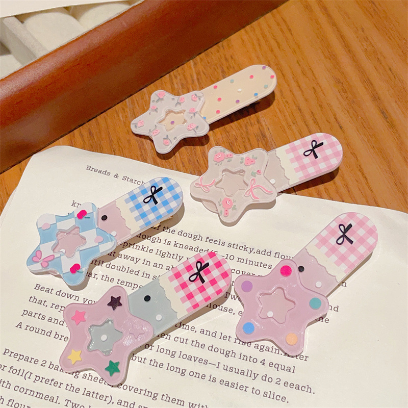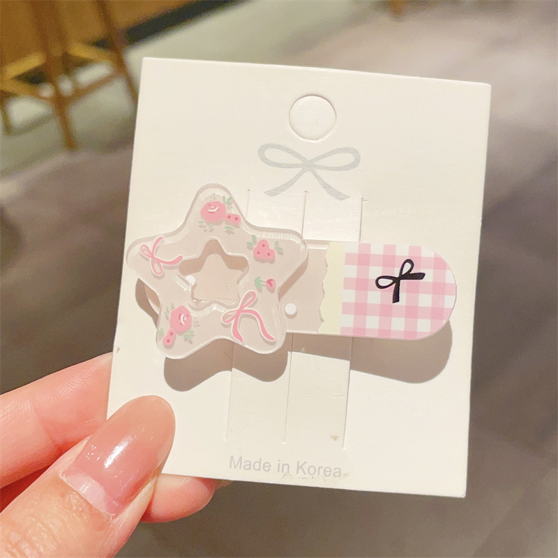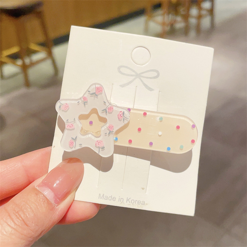 새로운 스타일의 작은 신선한 꽃무늬 별 타원형 덕빌 클립 인 소녀 하트 앞머리 사이드 클립 달콤한 일본과 한국 모자스토어 가기