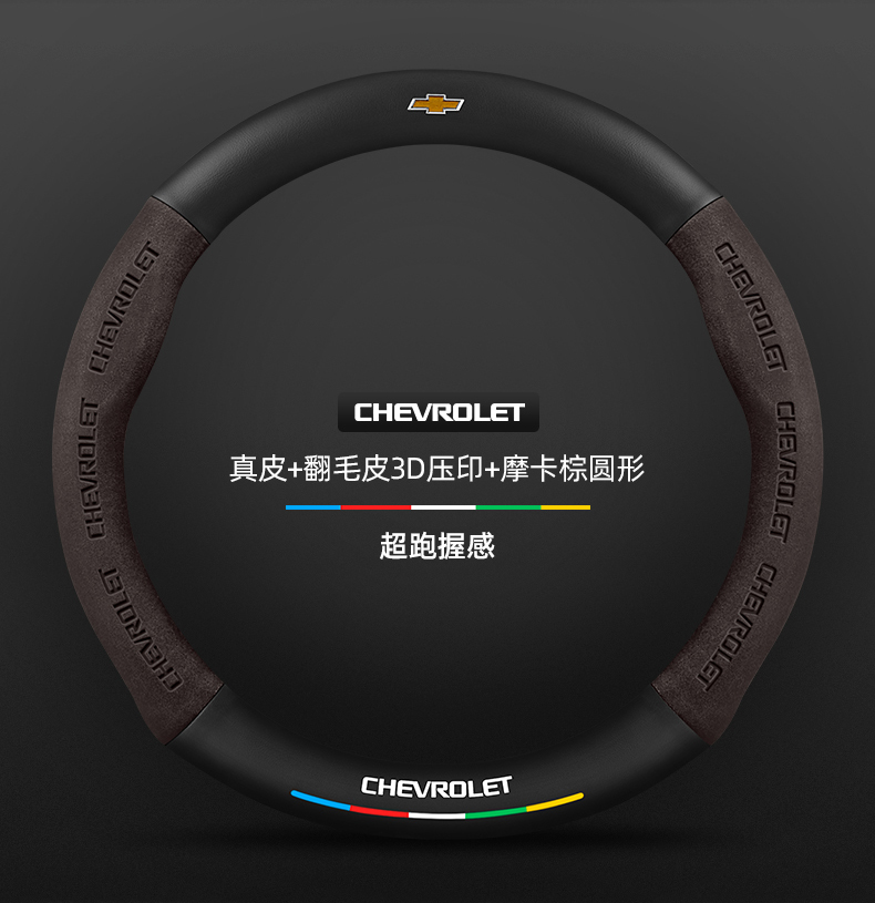 • 천연가죽 스웨이드 3D 엠보싱 모카 브라운 라운드 쉐보레 옐로우 라벨