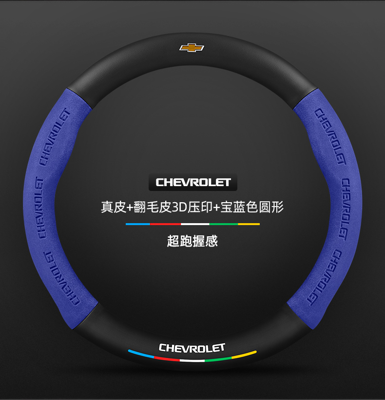 • 스웨이드 3D 양각 탄소 섬유 가죽 로얄 블루 라운드 쉐보레 블랙 라벨