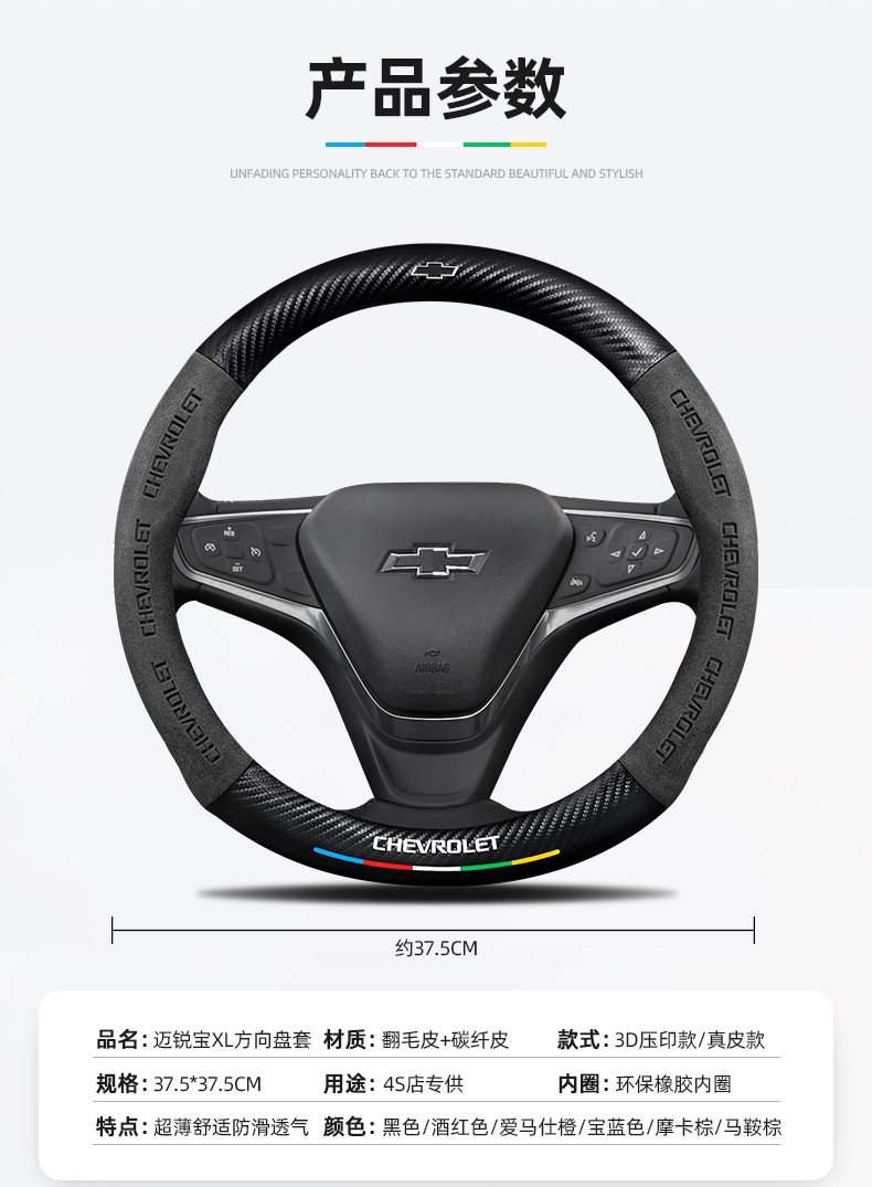 Chevrolet Malibu XL 스티어링 휠 커버 16-23 탄소 섬유 초박형 미끄럼 방지 스웨이드 가죽 자동차 핸들 커버