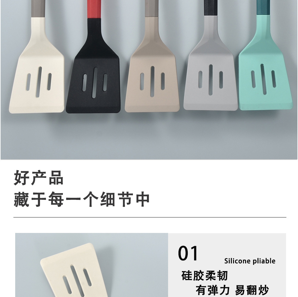 국경 간 실리콘 주방 용품 색상 일치 손잡이 프라이팬 주걱 식품 등급 고온 방지 주걱 요리 가정용 주걱 실리콘 주걱