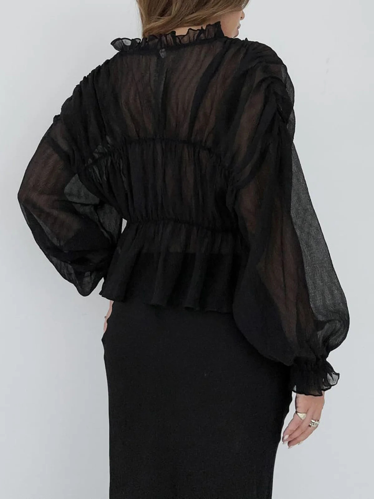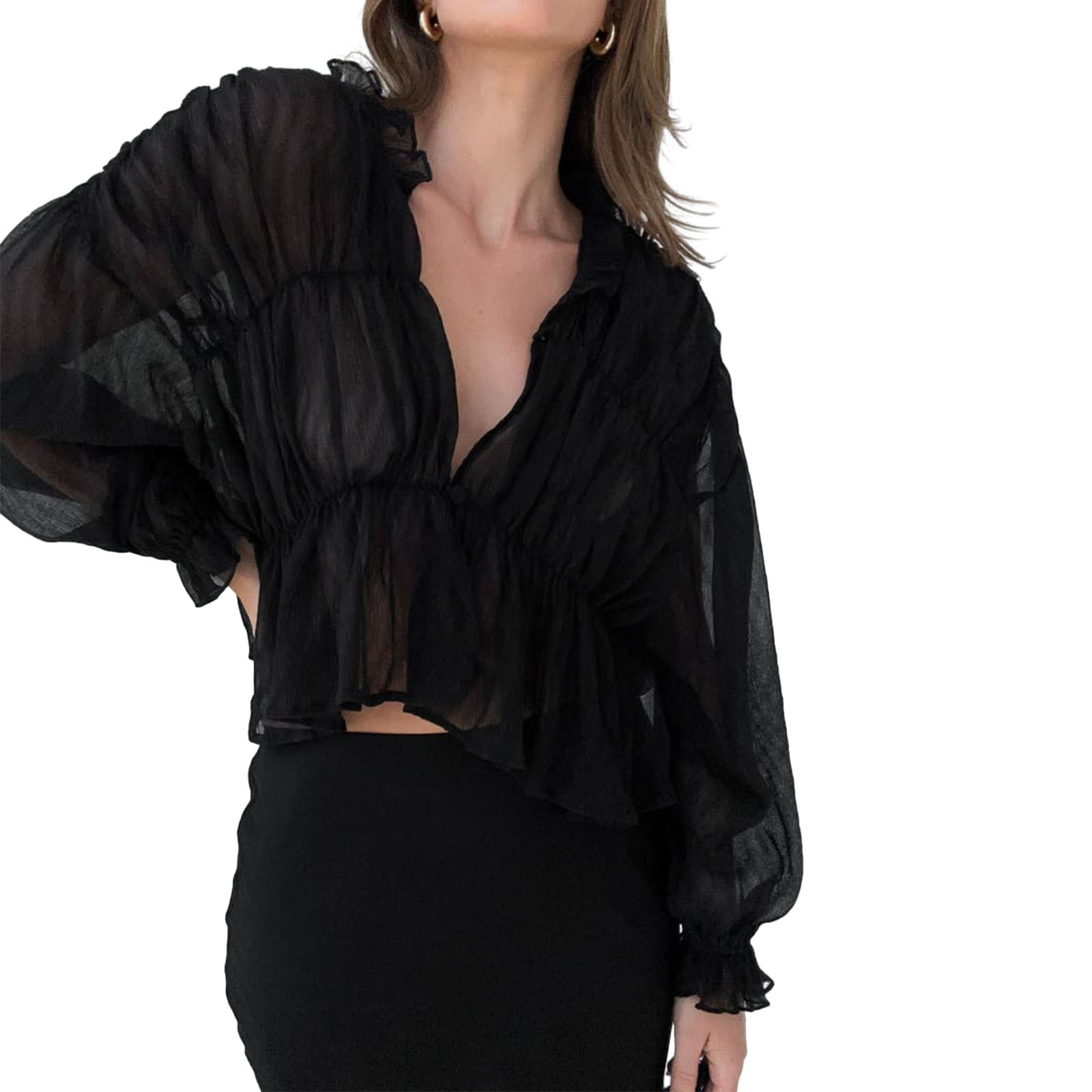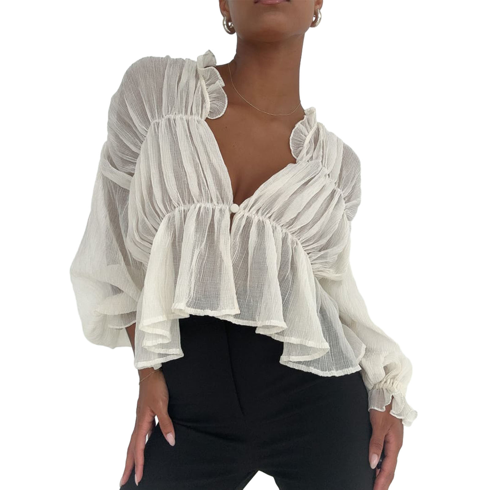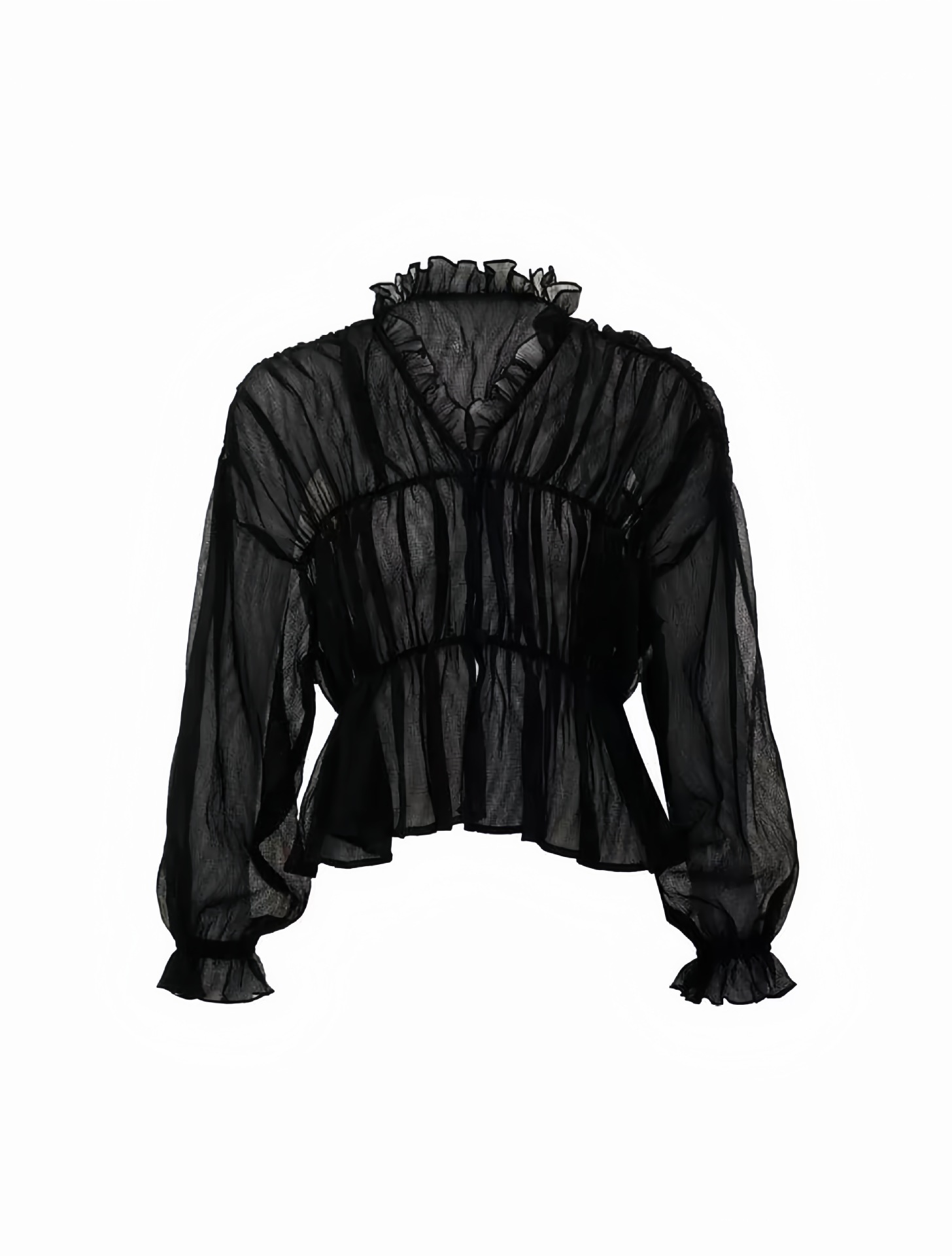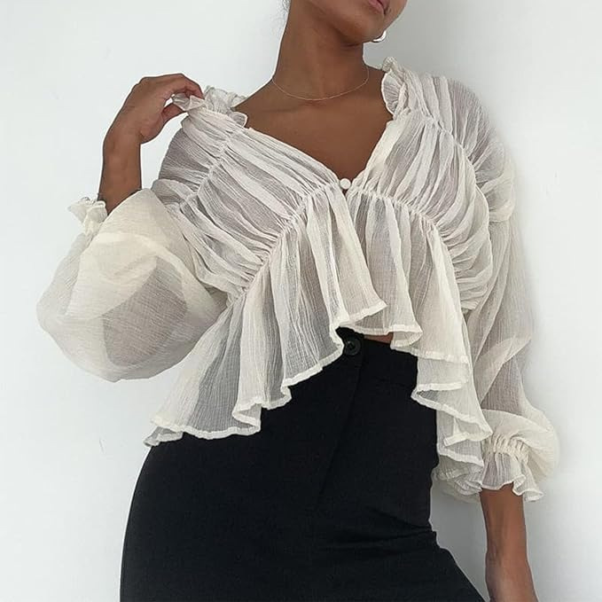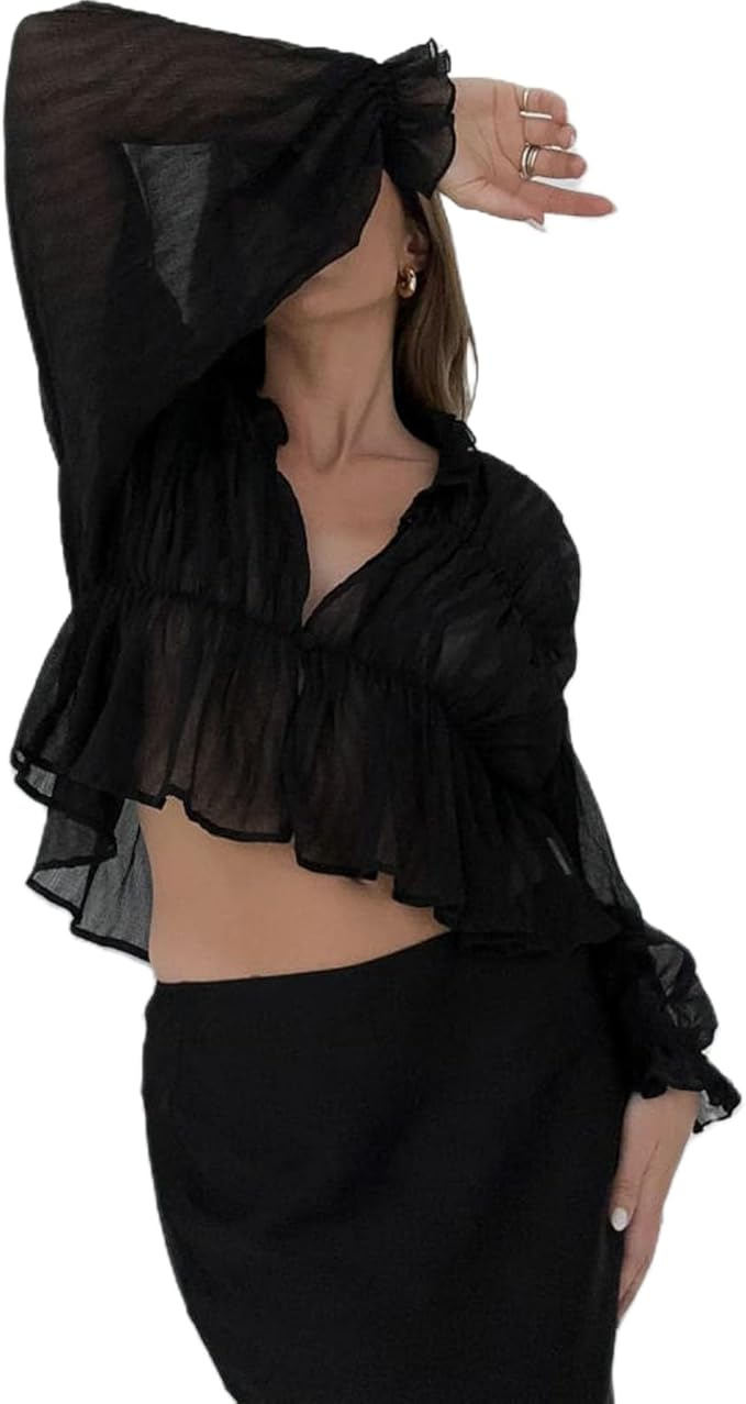 여성용 긴팔 쉬폰 셔츠 2025 여름 신작 한국식 루즈 벨 슬리브 탑스토어 가기