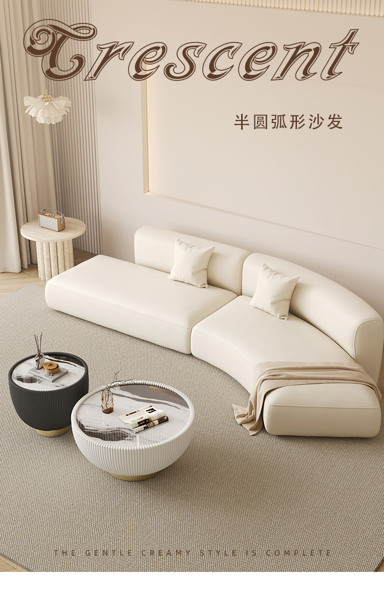 심플한 크림 스타일 반원형 아크 소파 북유럽 모던 소형 거실 미용실 휴식 공간 리셉션 조합스토어 가기