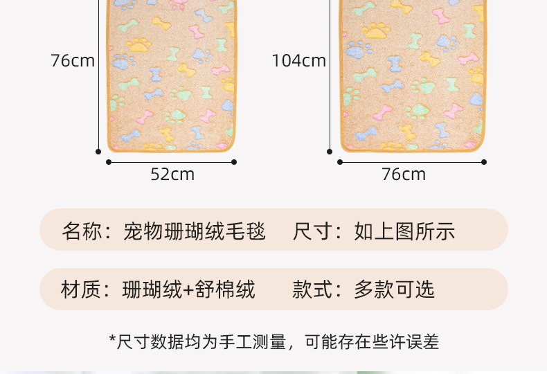 국경을 넘는 아마존 인기 산호 벨벳 애완 동물 담요, 사계절 범용 담요, 가을 겨울 따뜻한 담요, 개집 매트스토어 가기