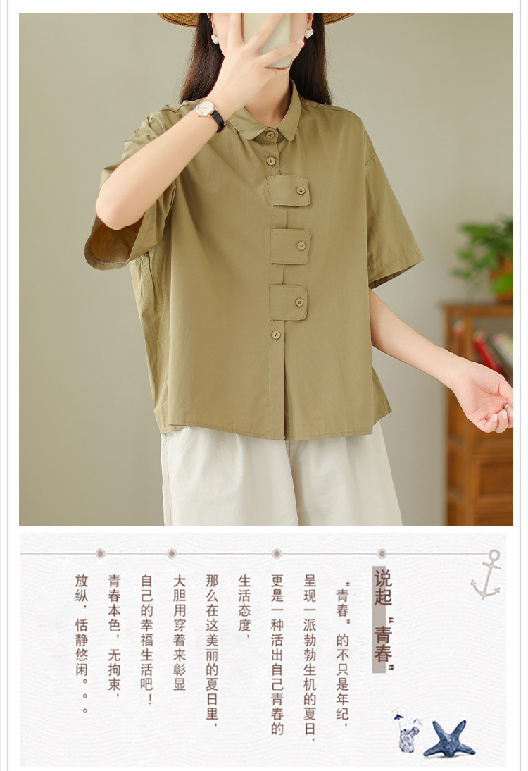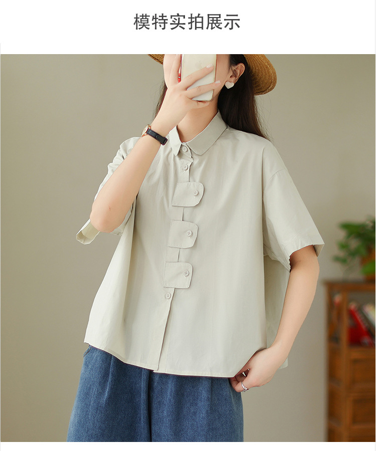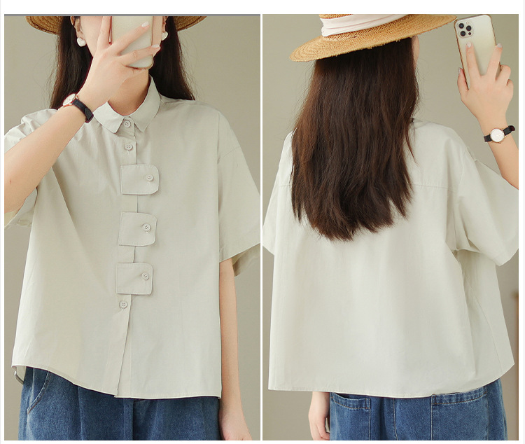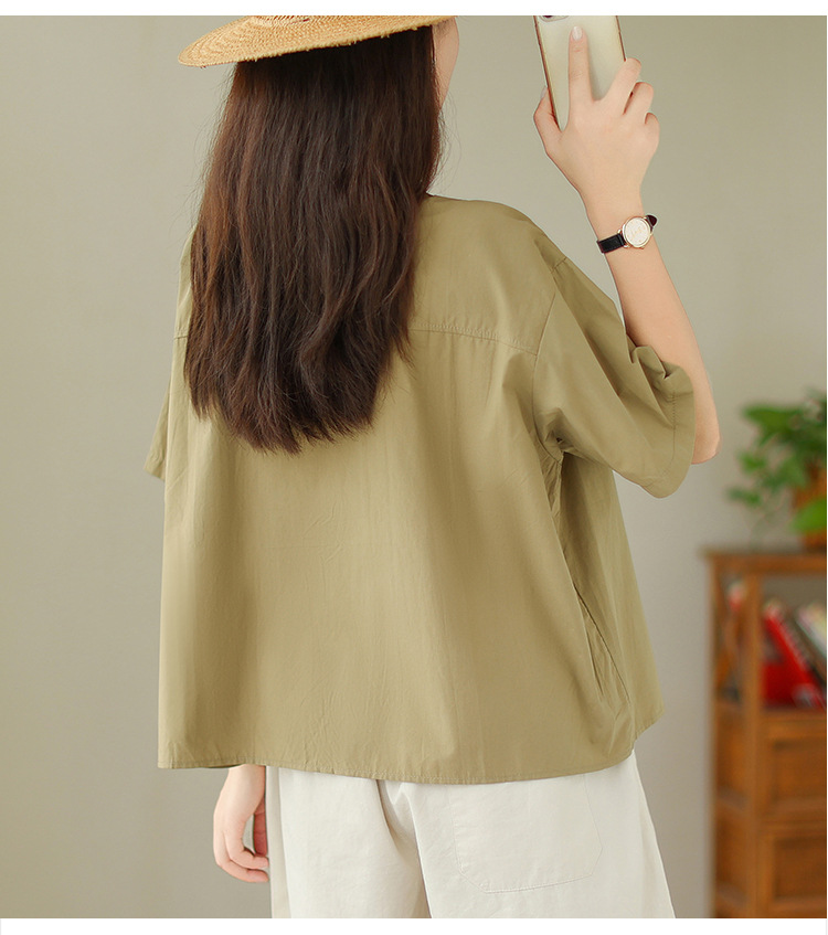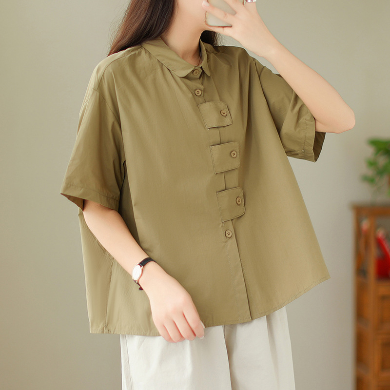 여성용 문학 플러스 사이즈 솔리드 컬러 캐주얼 루즈 셔츠스토어 가기