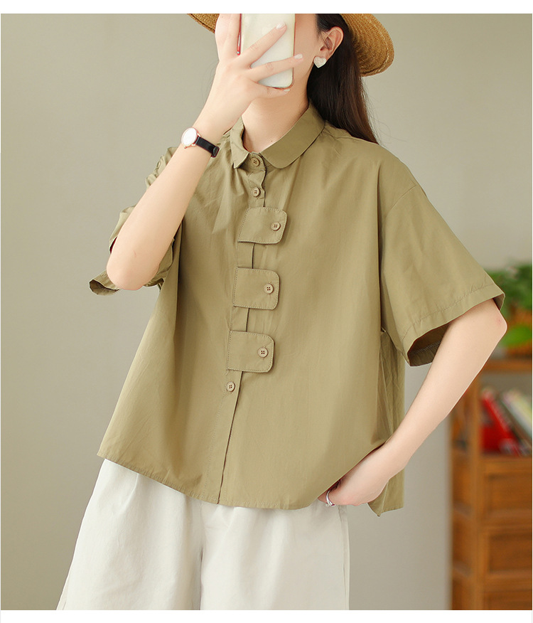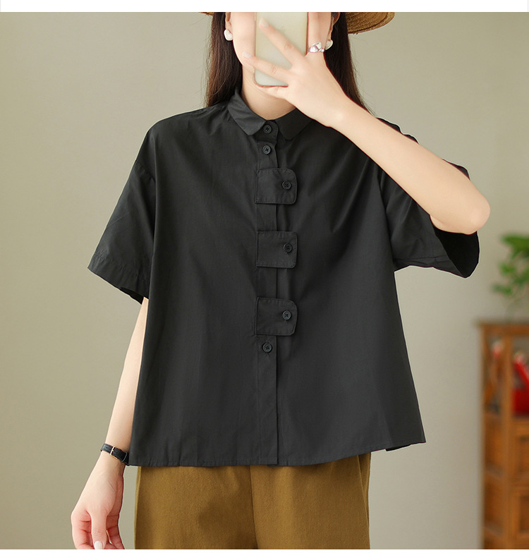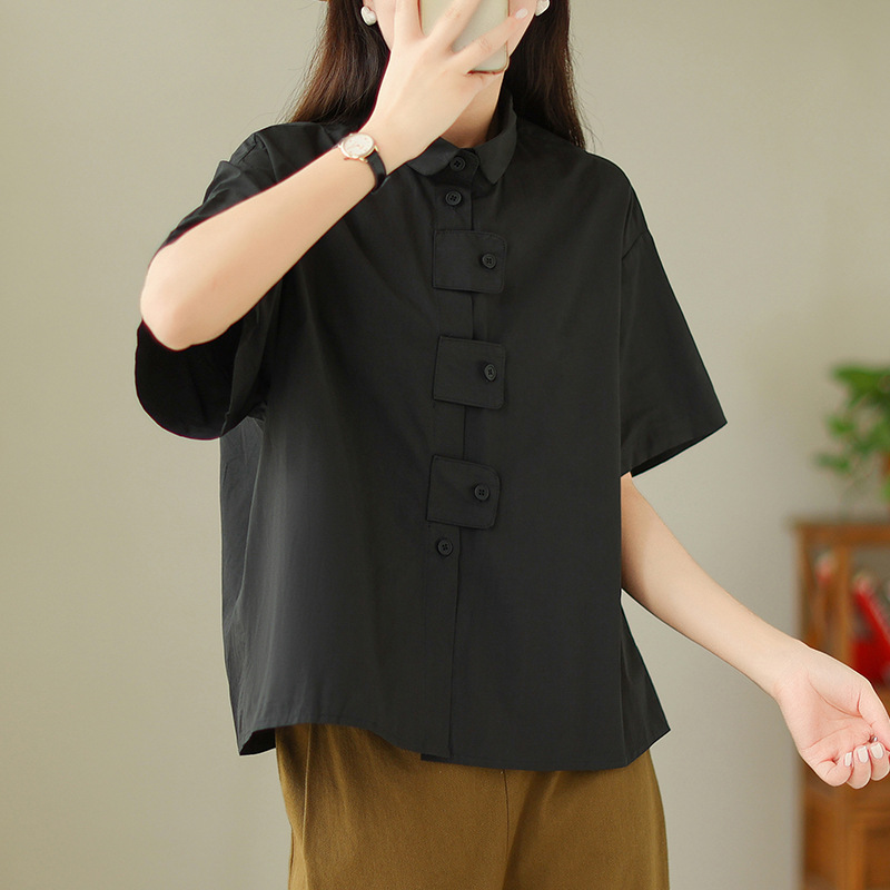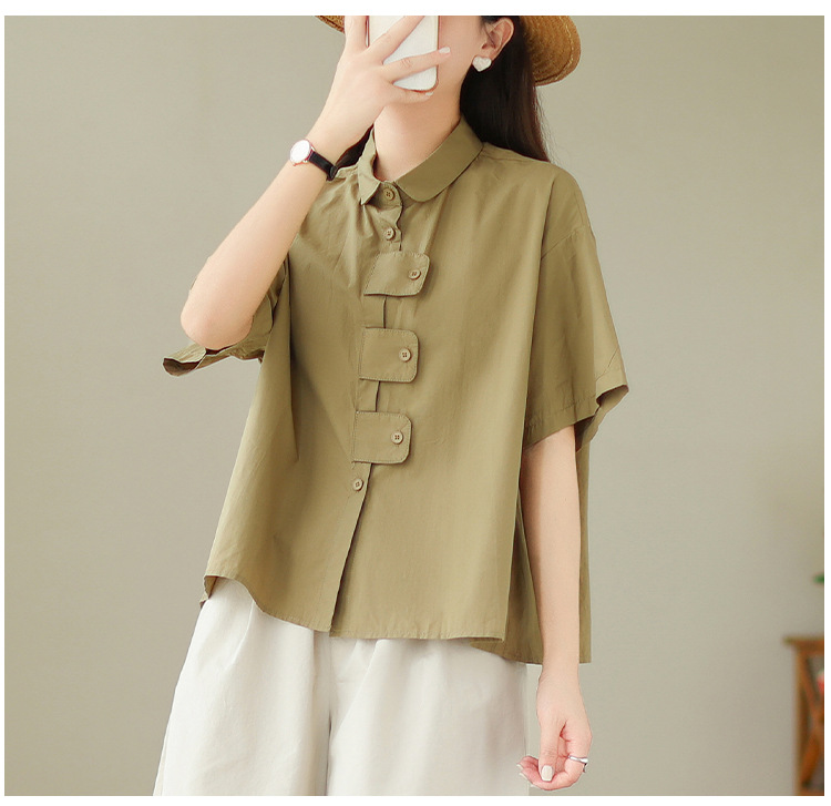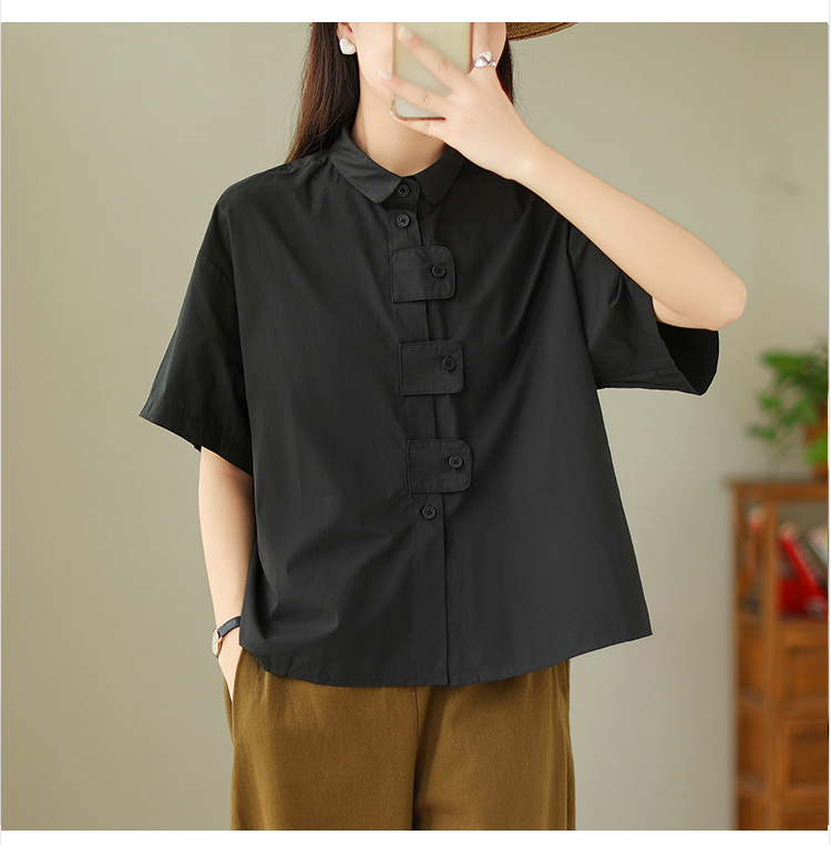 여성용 문학 플러스 사이즈 솔리드 컬러 캐주얼 루즈 셔츠스토어 가기
